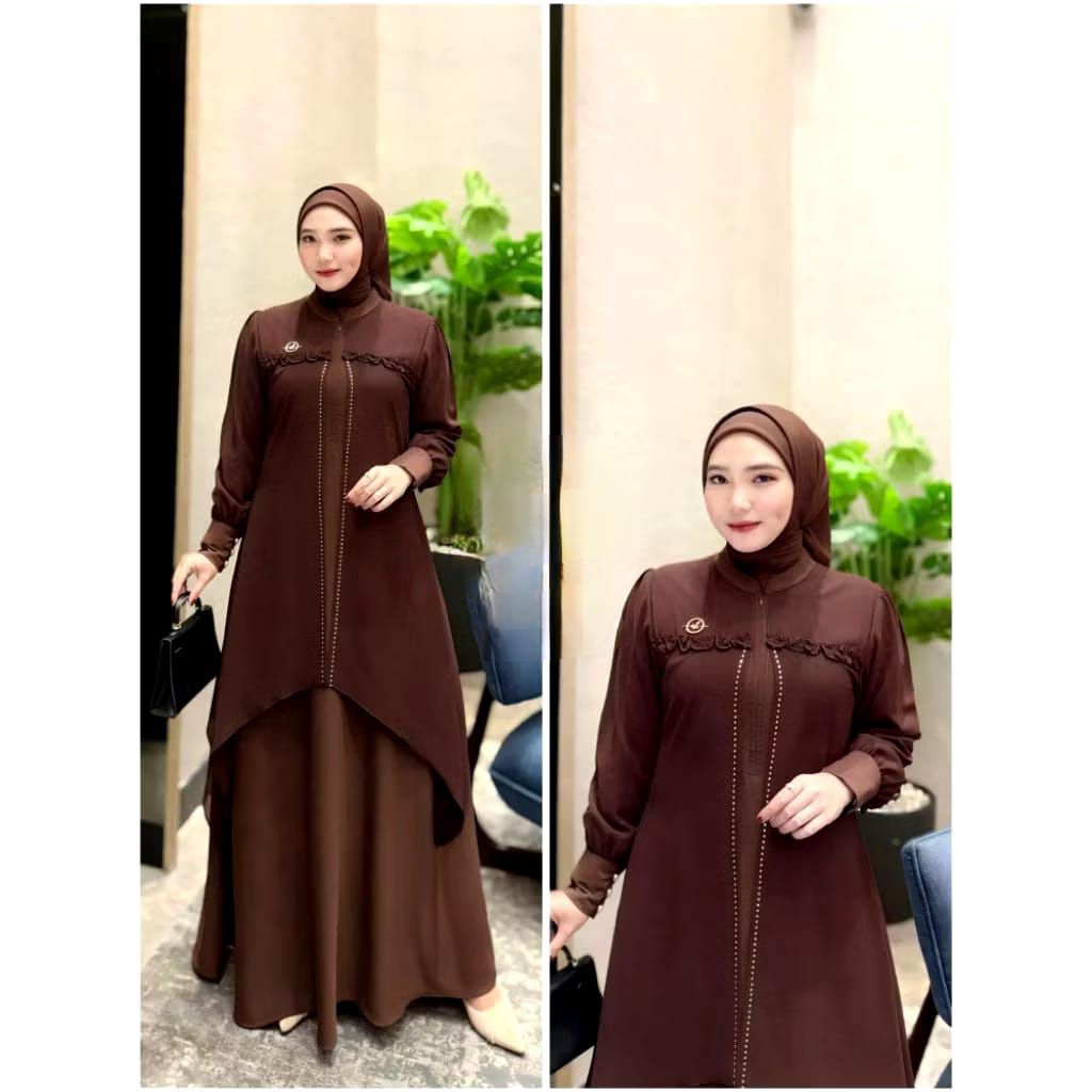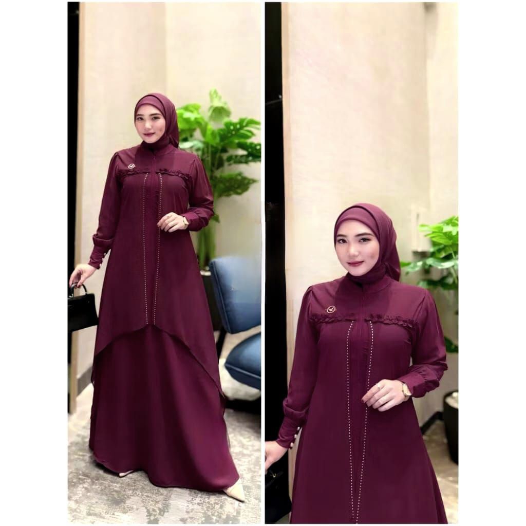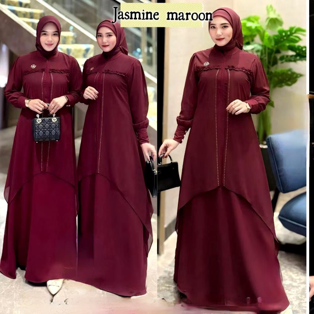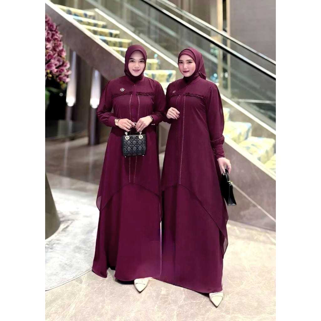 Women's Burgundy Jasmine Dress Mat Ceruty Swarovski Application Elegant Viral Eid Dress