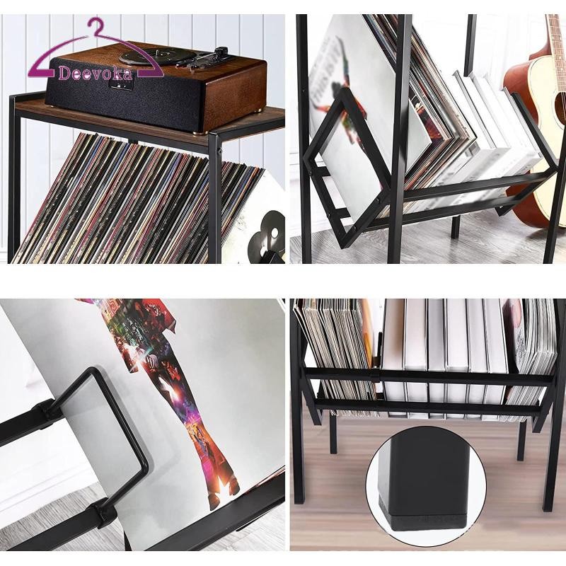 [deevoka] Vinyl Player Stand Record Storage Rustic with Metal Legs 2 Tier Easy to Clean Playing Stand Cabinet Holder for Bedroom Sofa