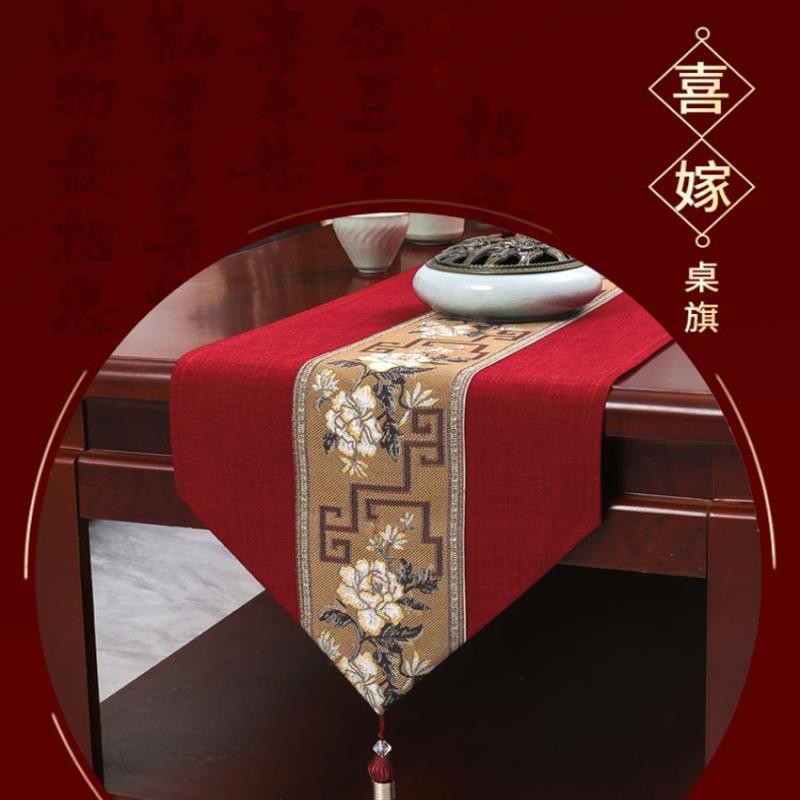 婚嫁桌旗红色喜庆订婚礼高档结婚喜庆茶几布房间装饰喜事长条桌布za