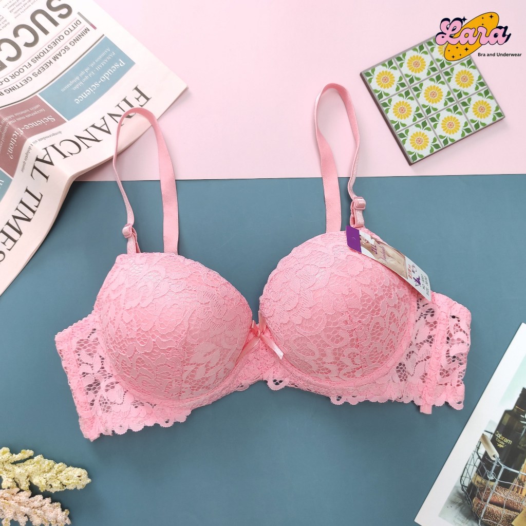 [Lara Lingerie] Bra Women Wired Thick Sponge Lace Push Up Baju Dalam Wanita Span Tebal Renda Berdawai 女士内衣有钢圈胸罩蕾丝文胸j聚拢型