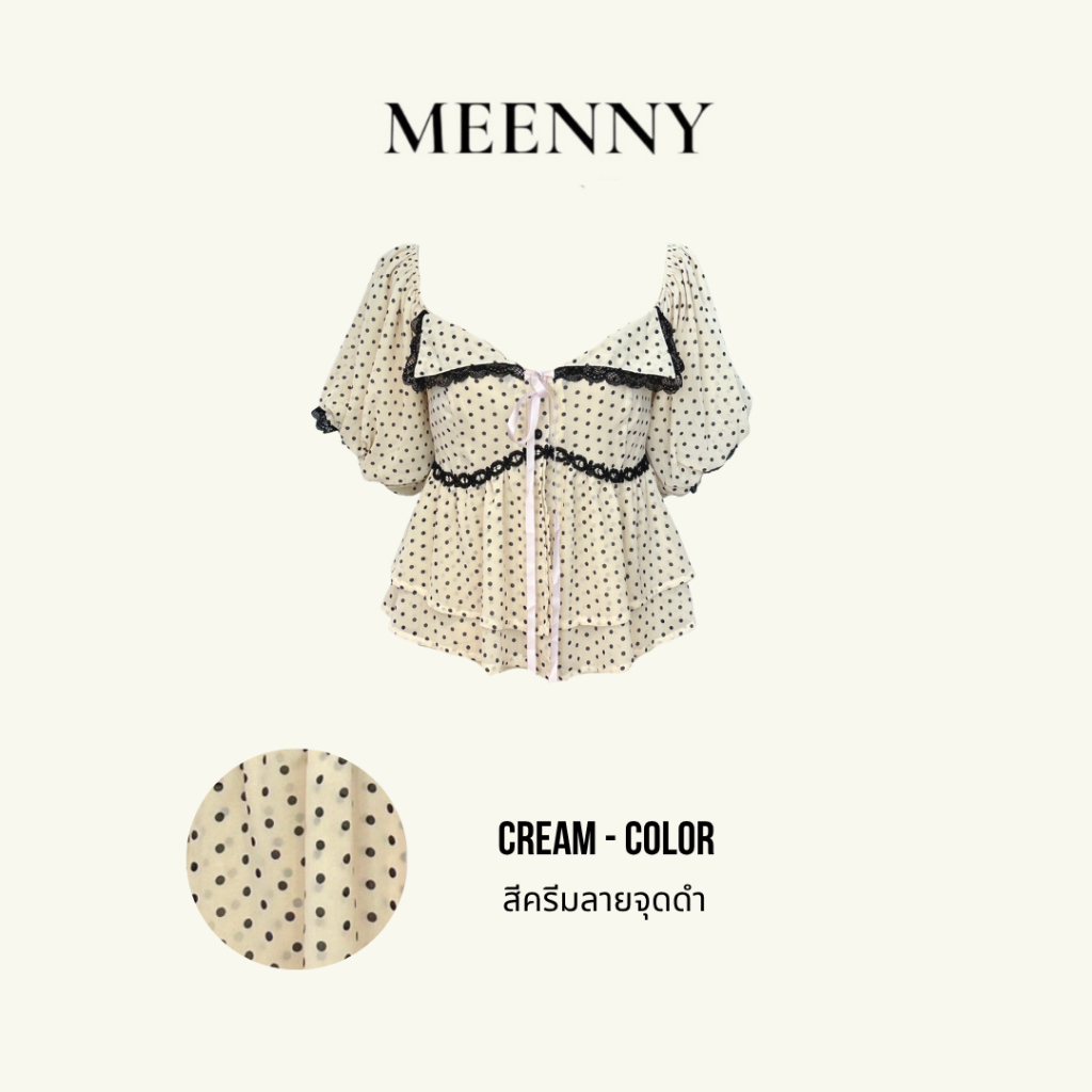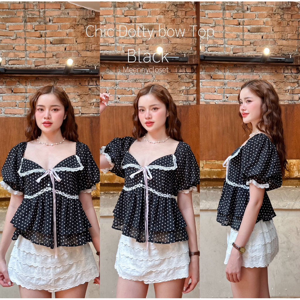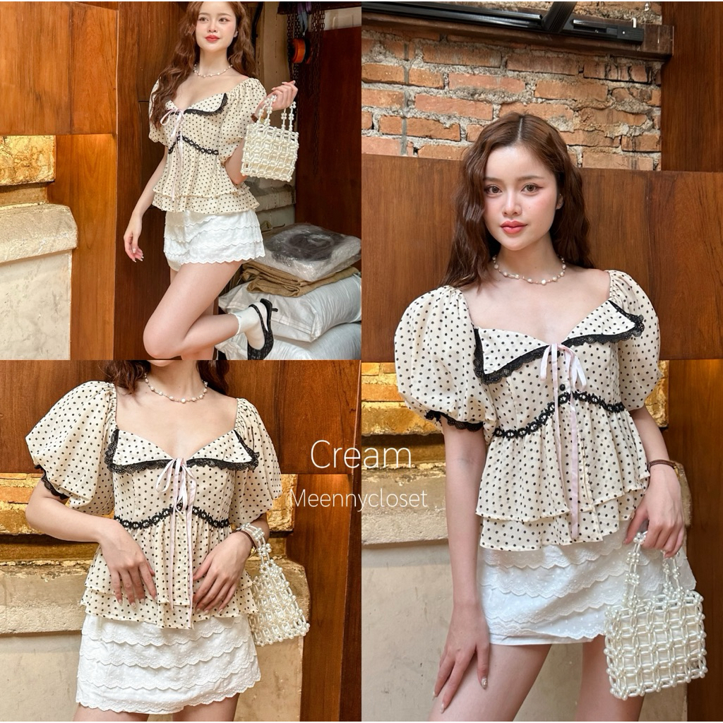 MEENNY Closet | PDL3 Polka Dot Shirt Blouse Women Polka Dot Top With Lace Decoration For Young Ladies