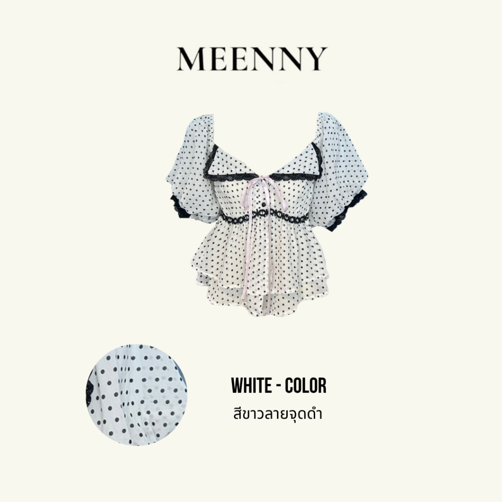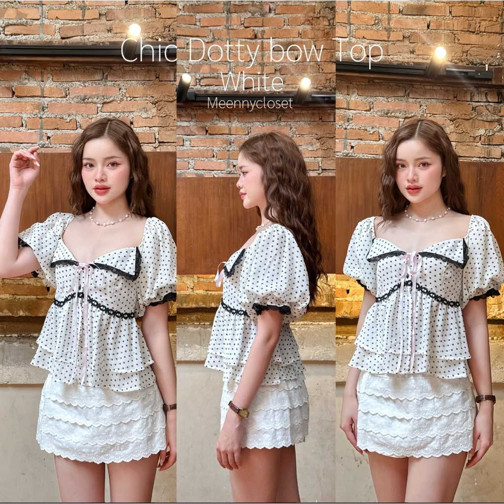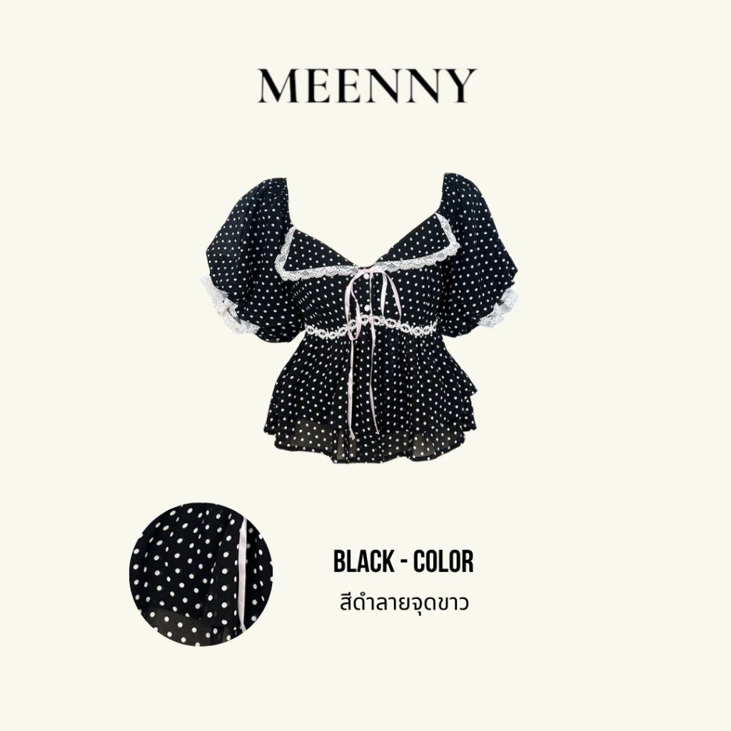 MEENNY Closet | PDL3 Polka Dot Shirt Blouse Women Polka Dot Top With Lace Decoration For Young Ladies