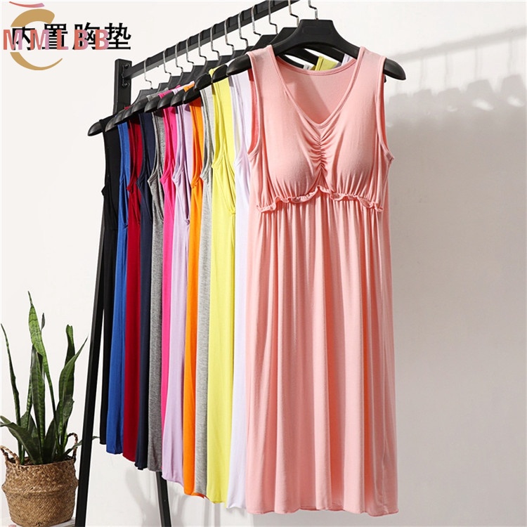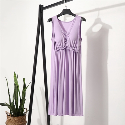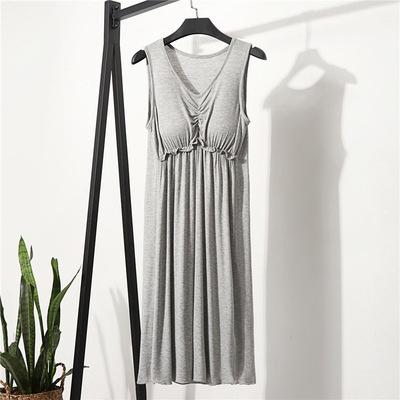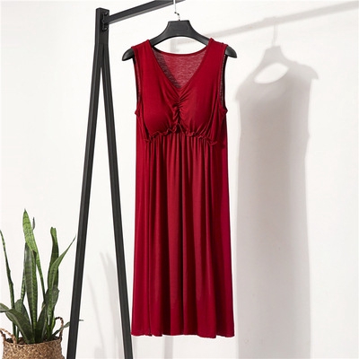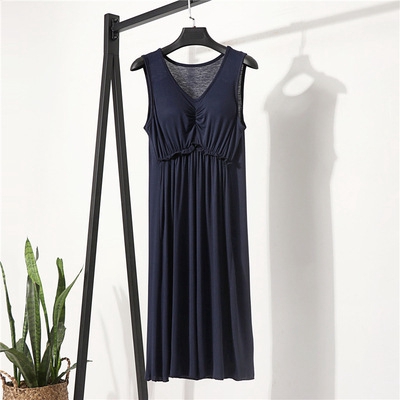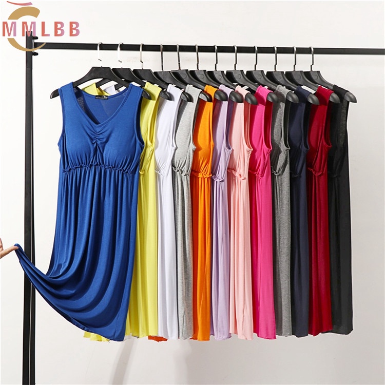 Women Dresses Plain Dress Loose Lounge wear sleeveless V Neck dress Casual Summer Sleepwear