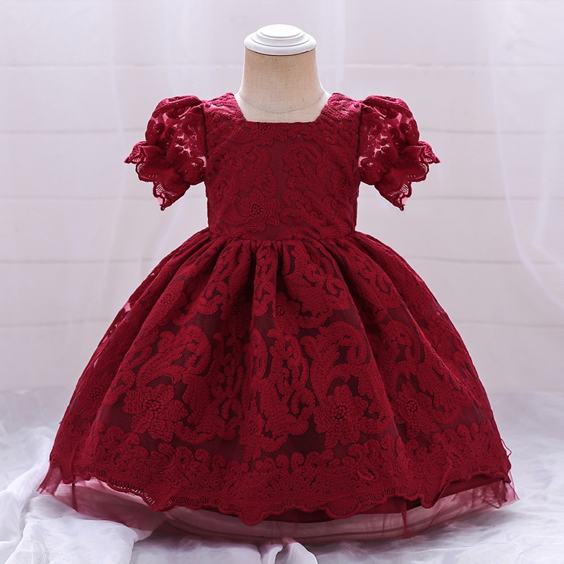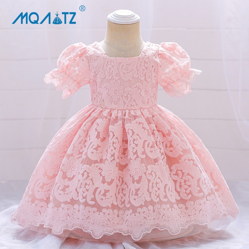 MQATZ Vintage 1st Birthday Dress For Baby Girl Clothes Flower Baptism Princess Dress Girls Dresses Party Costume Short Sleeve 0-5 Year L2091XZ