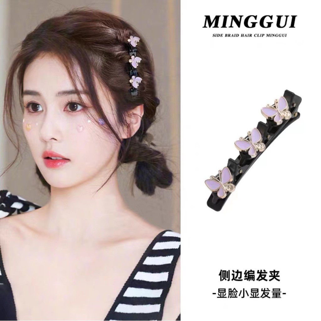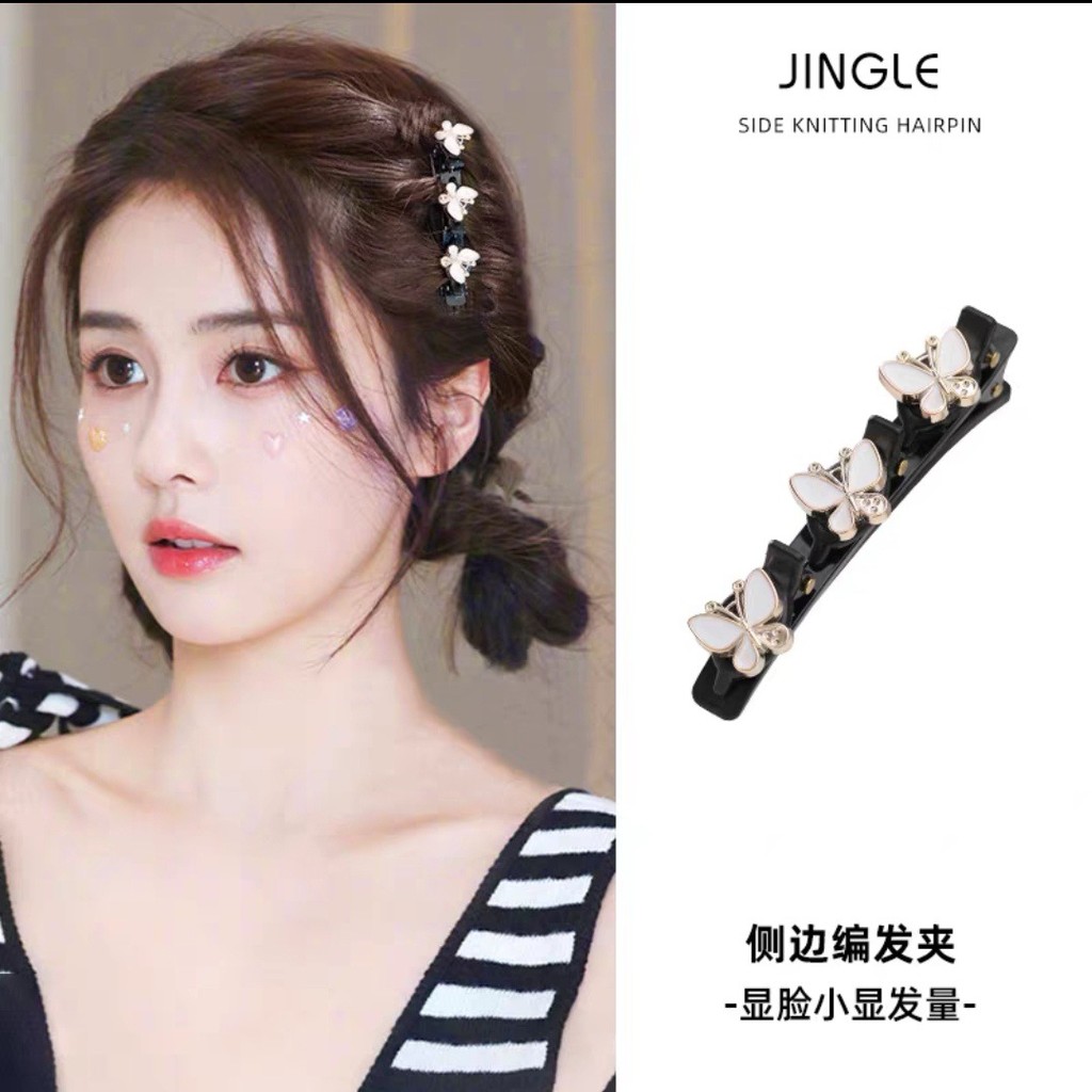 Hair Clip New Fashion Butterfly Braided Hairpin Luxury Pearl Duckbill Clip Sparkly Rhinestone Flowers Bangs Side Clip For Woman Girls Hair Accessories