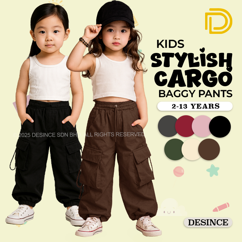 🇲🇾 DESINCE Unisex Kid Baggy Cargo Pants Seluar Baggy Cargo Budak Lelaki Dan Perempuan KP 119