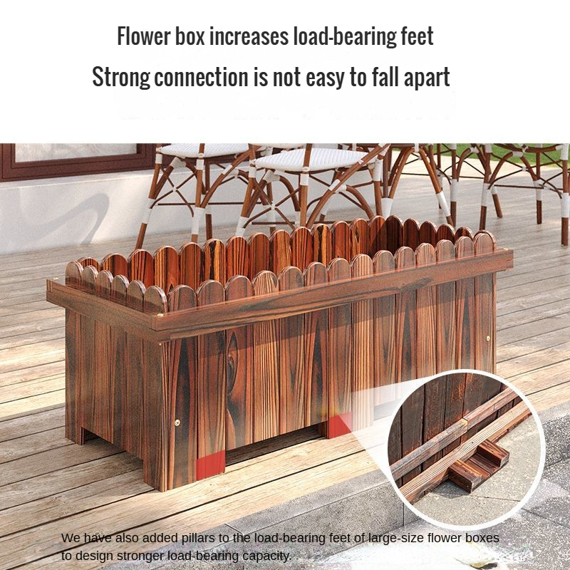 Outdoor Preservative Wood Flower Box Courtyard Balcony Planting Flowers Rectangular Engineering Greening Planting Box Outer Keel
