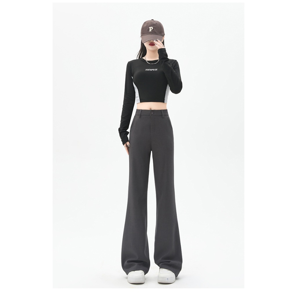 LuxZen Korean Style Women's High Waist Suit Casual Pants New Style Drape Slim Fit Flared Mopping Pants