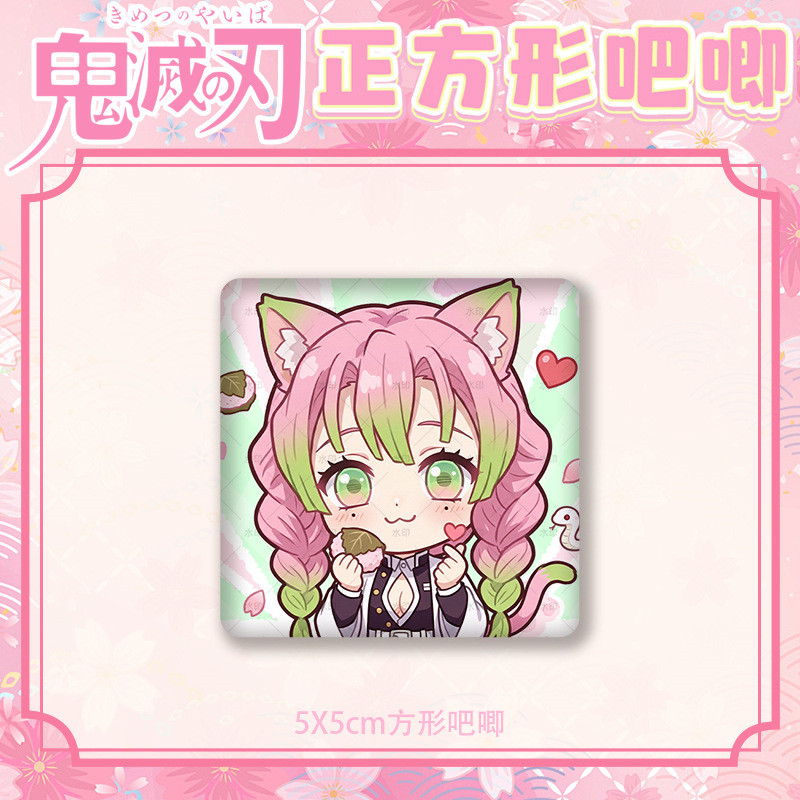 2026 New Style Demon Slayer Square Bar Chirp PET Double Flash Ears Series Q Version Nine-Pillar Badge Laser Badge Tinplate Valley20260316 2026新款鬼灭之刃方形吧唧PET双闪耳朵系列Q版九柱徽章镭射胸章马口铁谷子20260316