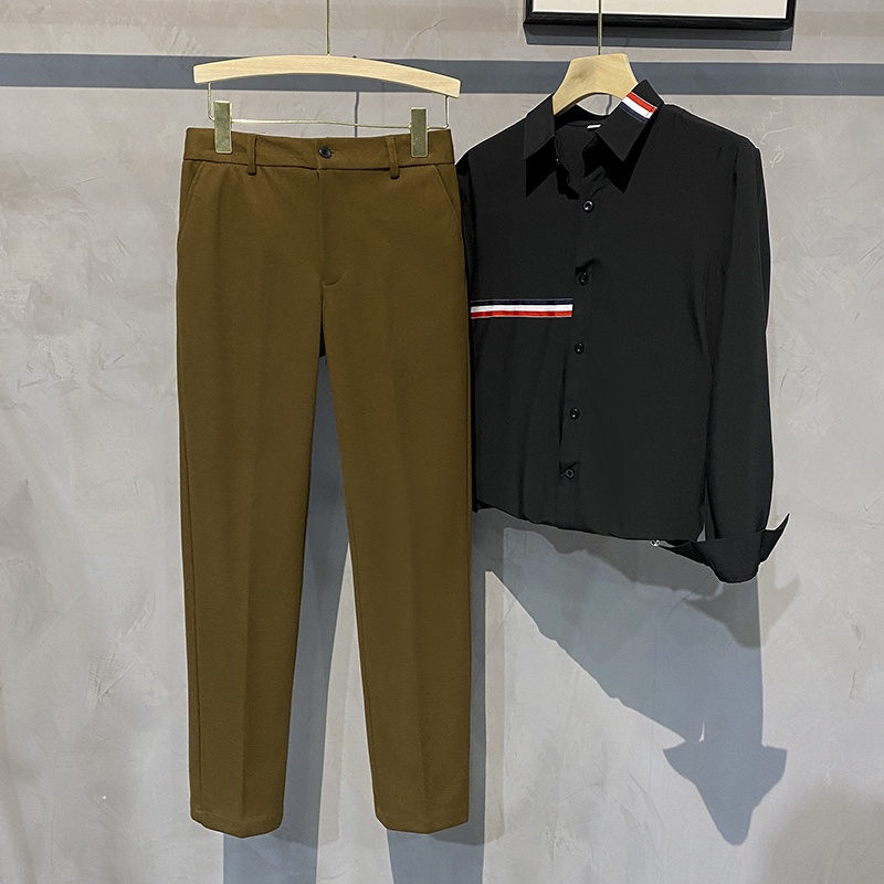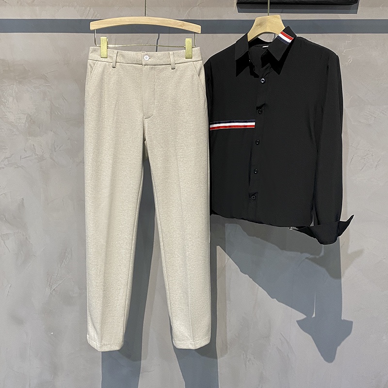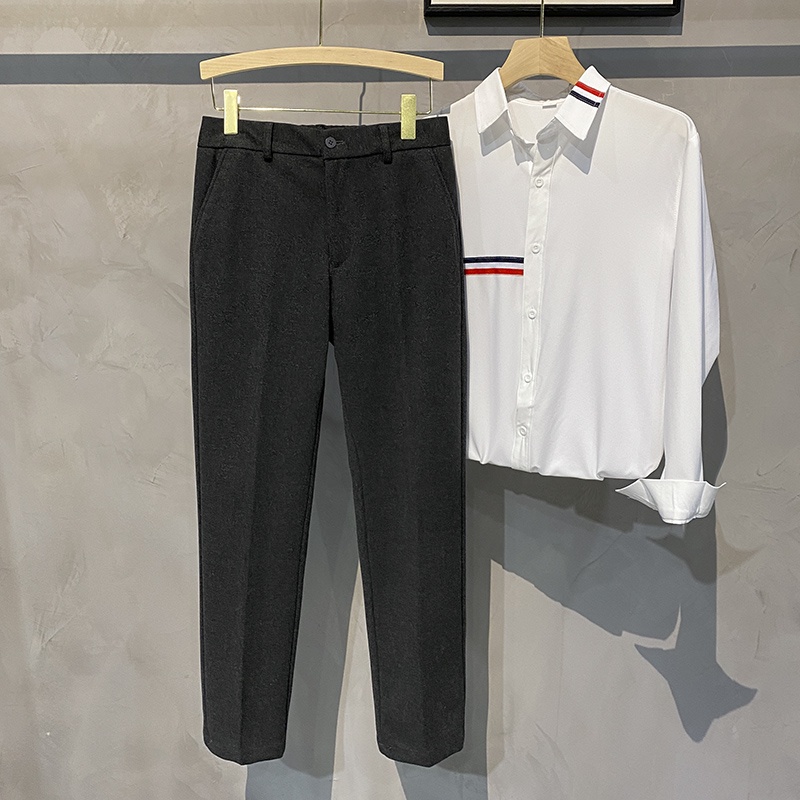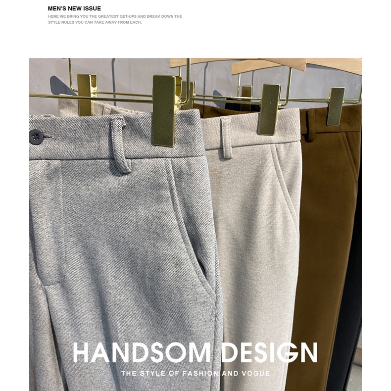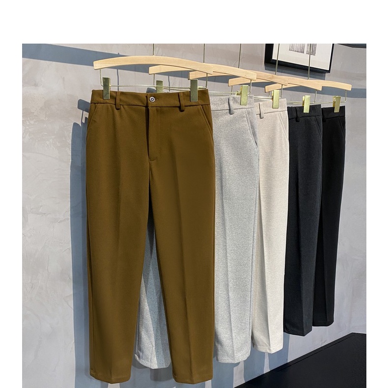 Autumn Winter Woolen Ankle Pants, Korean Version High-End Business Trousers, Men's Non-Iron Thickened Warm Casual Suit Pants