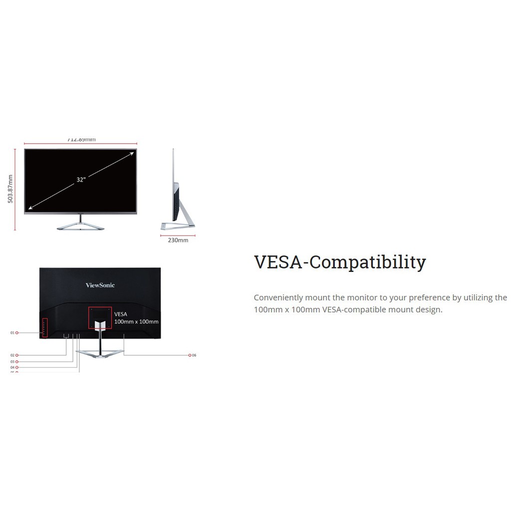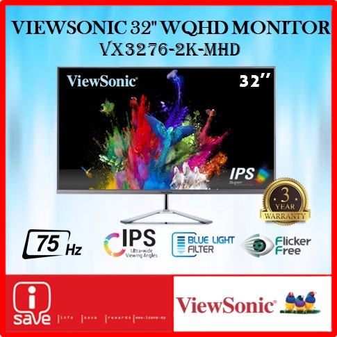 VIEWSONIC VX3276-2K-MHD 32" WQHD IPS MONITOR FRAMELESS BUILD IN SPEAKER ( 4MS 75Hz 2560x1440 2K HDMIx2 DP) VX3276