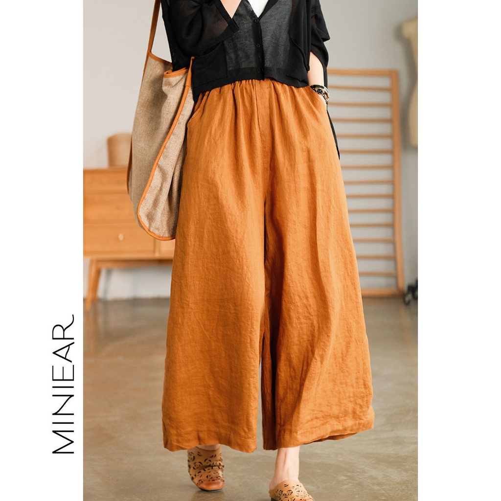 2022 new Cotton Linen Ankle-Length Wide-Leg Pants Spring Summer Casual Literary Large Size Loose Breathable Slimmer Look Cool