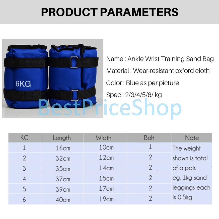 BPS 1KG (0.5kgx2) 2KG (1kgx2) 3KG (1.5kgx2) Ankle Weights Sand bag Wrist Weight Arm Leg Running Hiking Jungle ST-AW