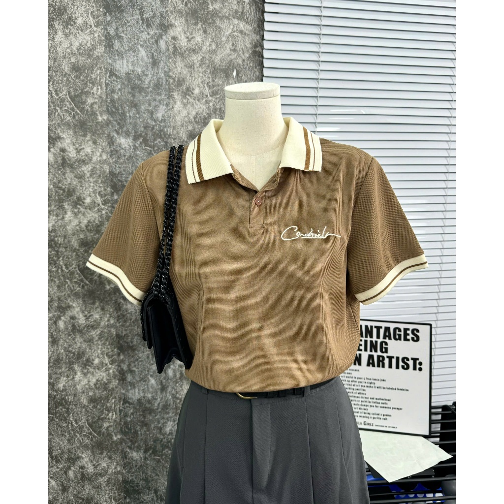Women's Polo-Lista T-shirt with embroidered letters designed from all sizes, elegant-luxurious, suitable for all seasons (Code 3) Polo Shirt Women Collar Shirt Women
