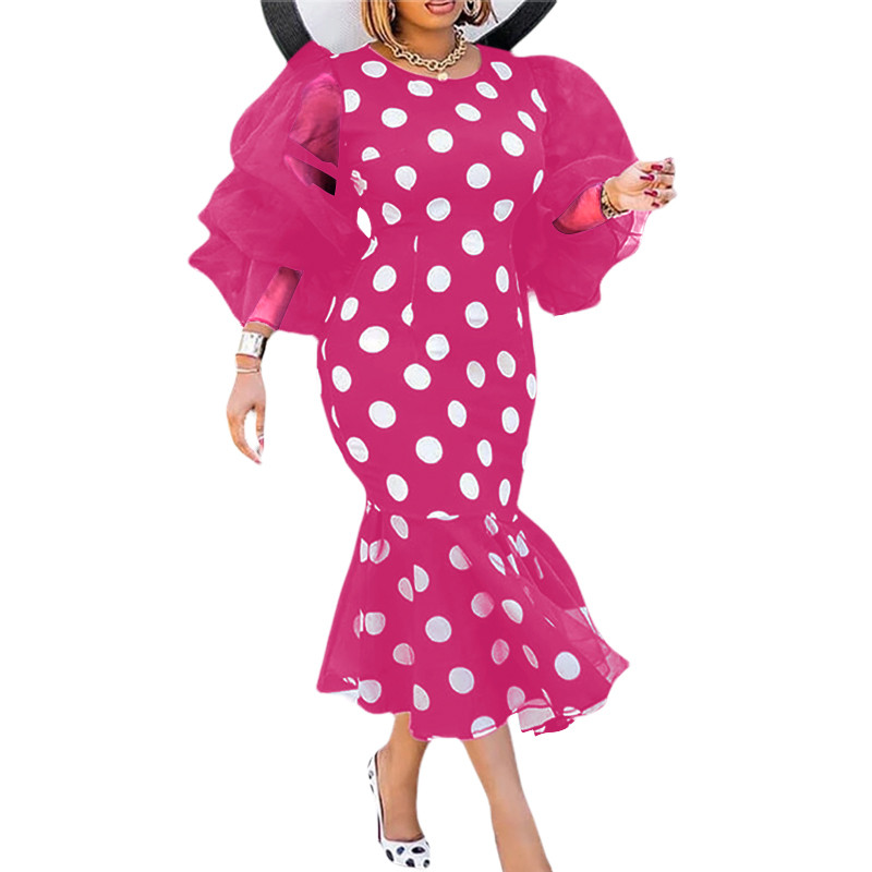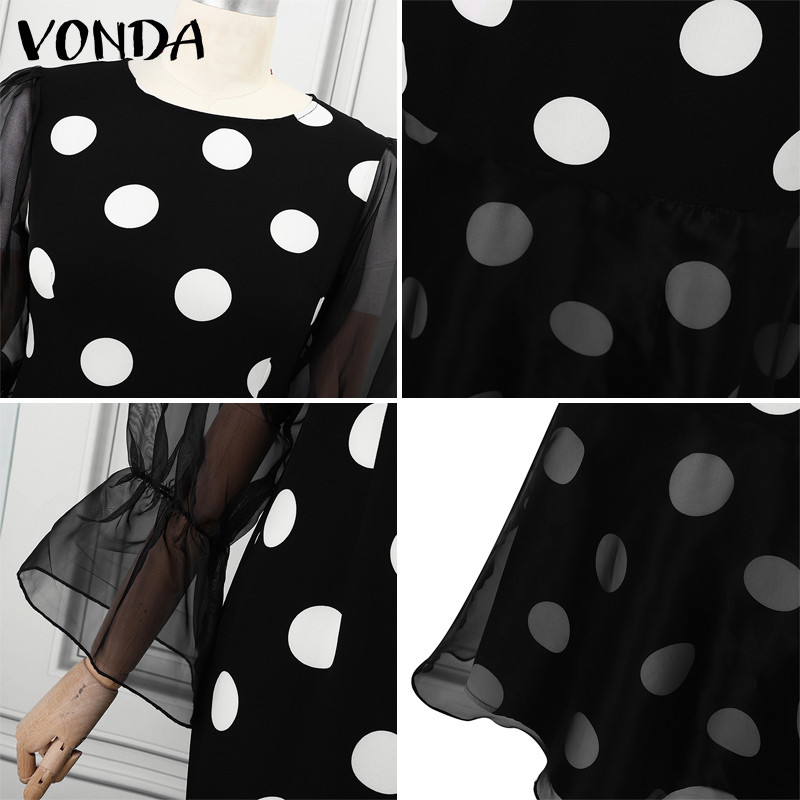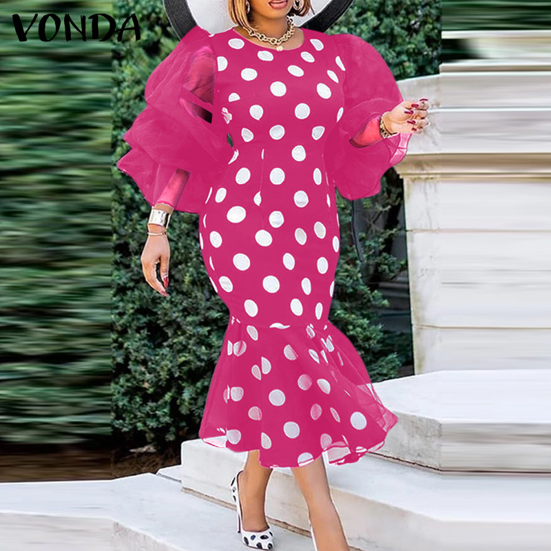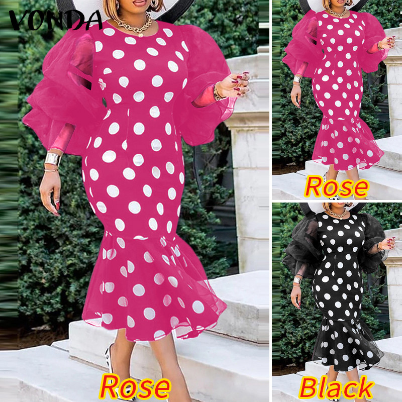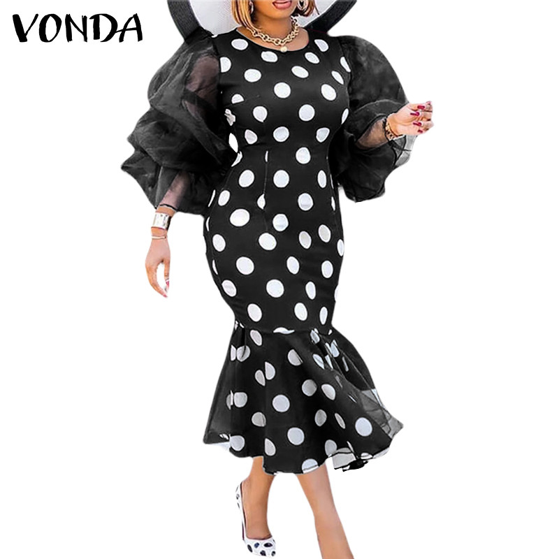 VONDA Women Vintage Mid-Length Long-Sleeved Crew Neck Appointment Dresses
