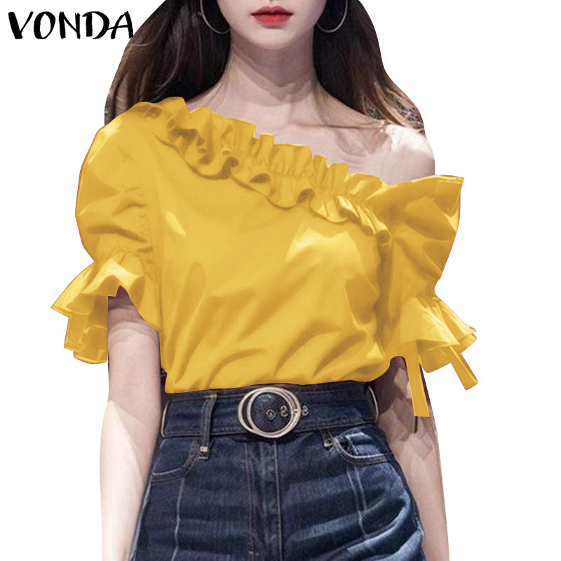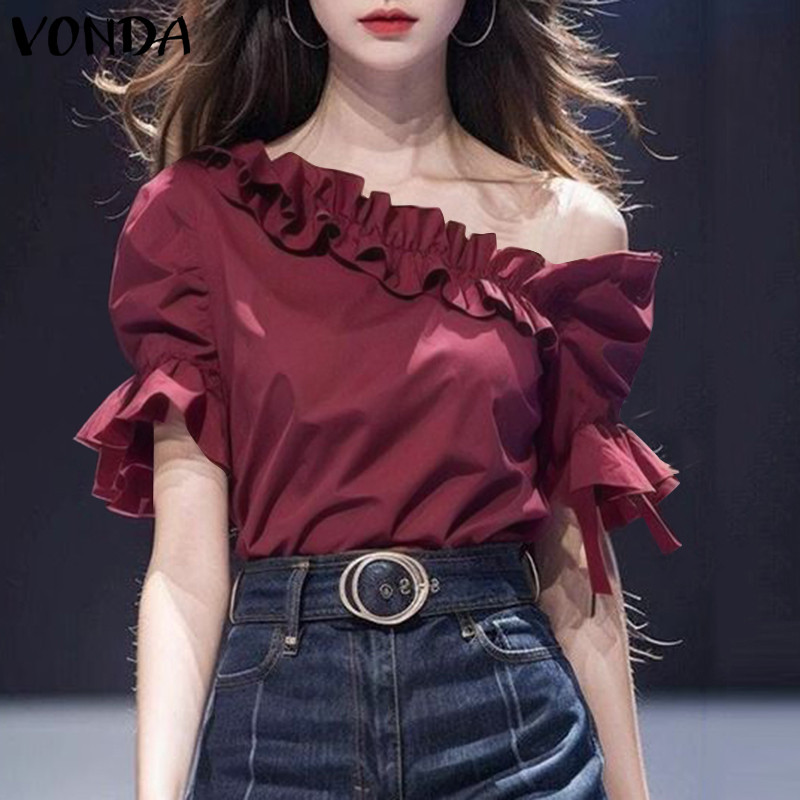 VONDA Women Korean Fashion Off Shoulder Short Sleeve Summer Blouse