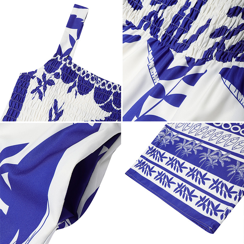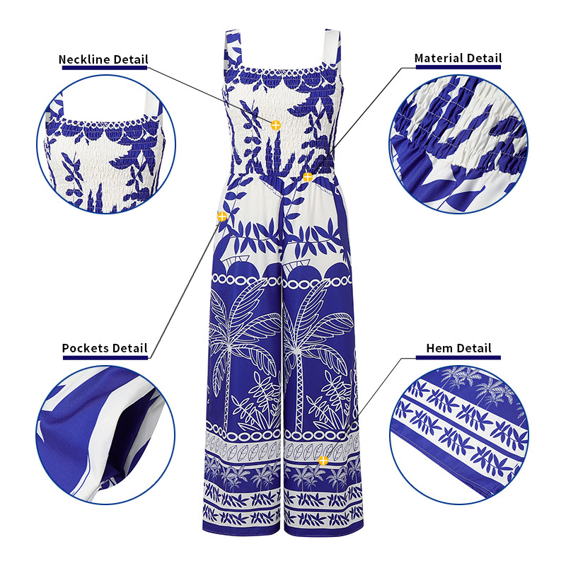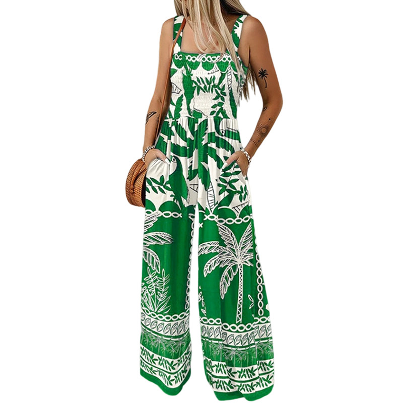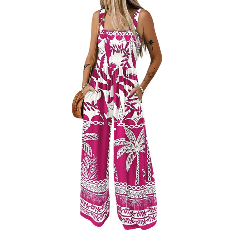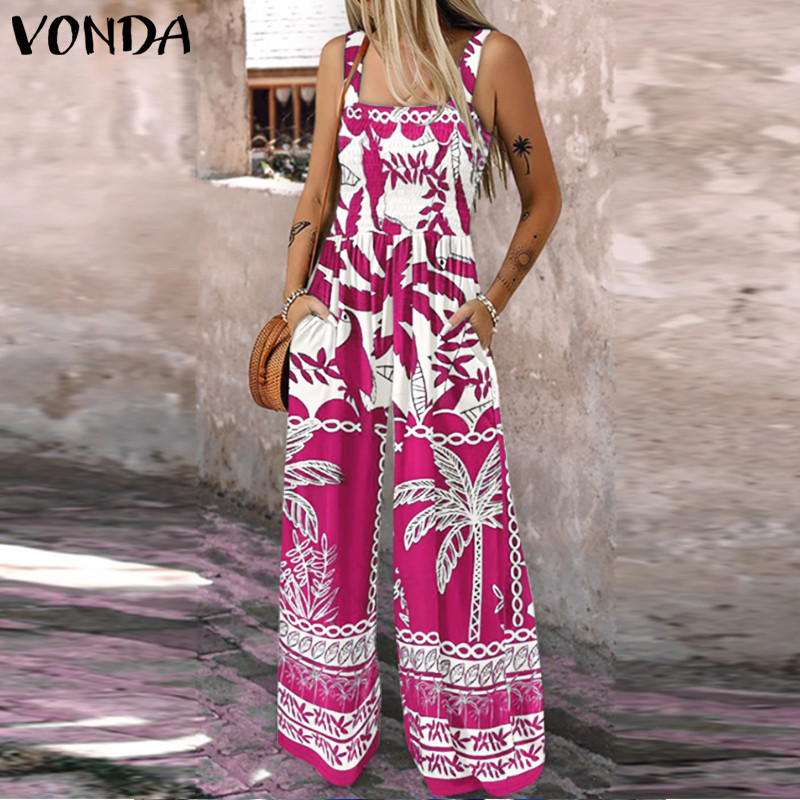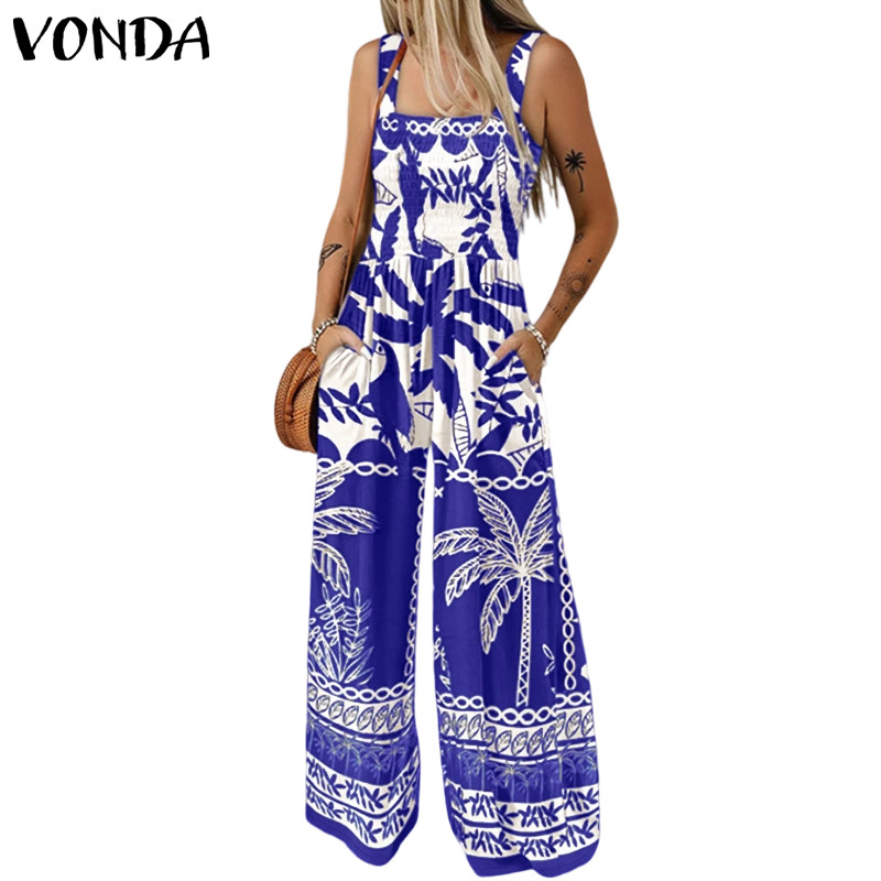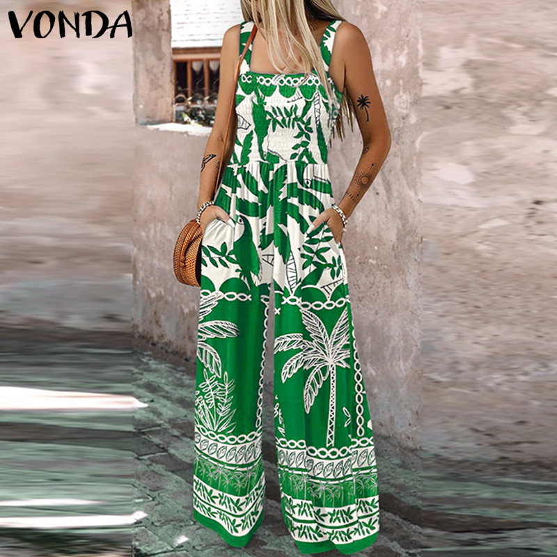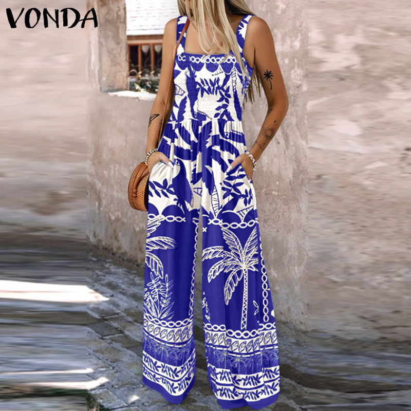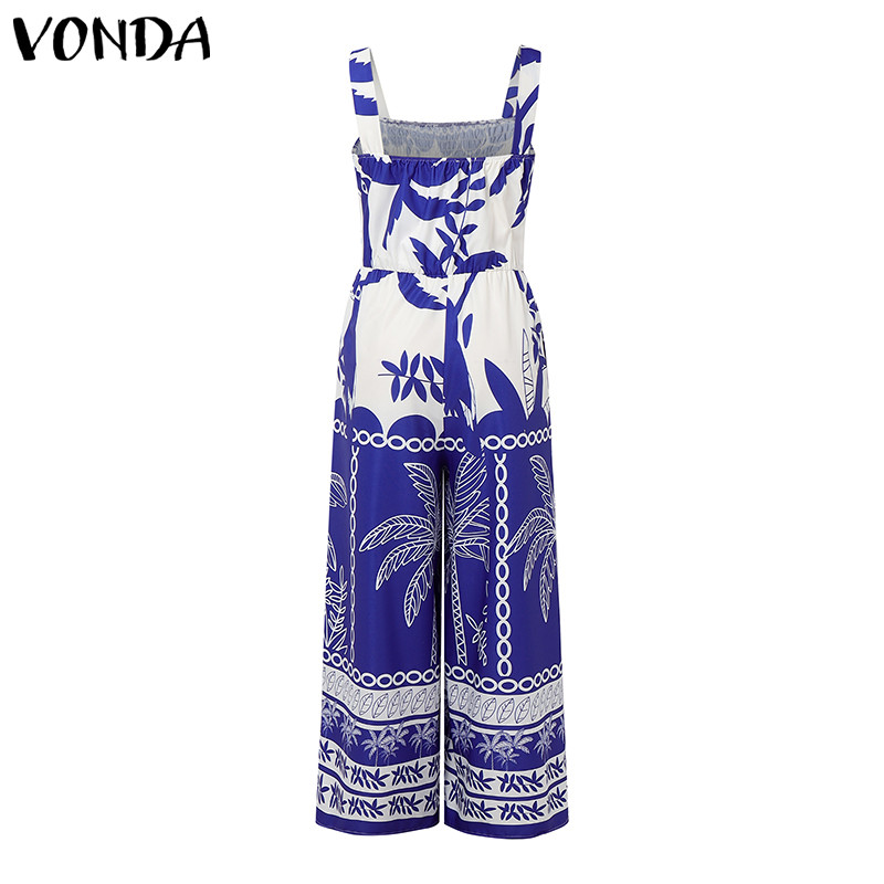 VONDA Women Vintage Vacation Style Square Collar Sleeveless Floral Print Slip Jumpsuits