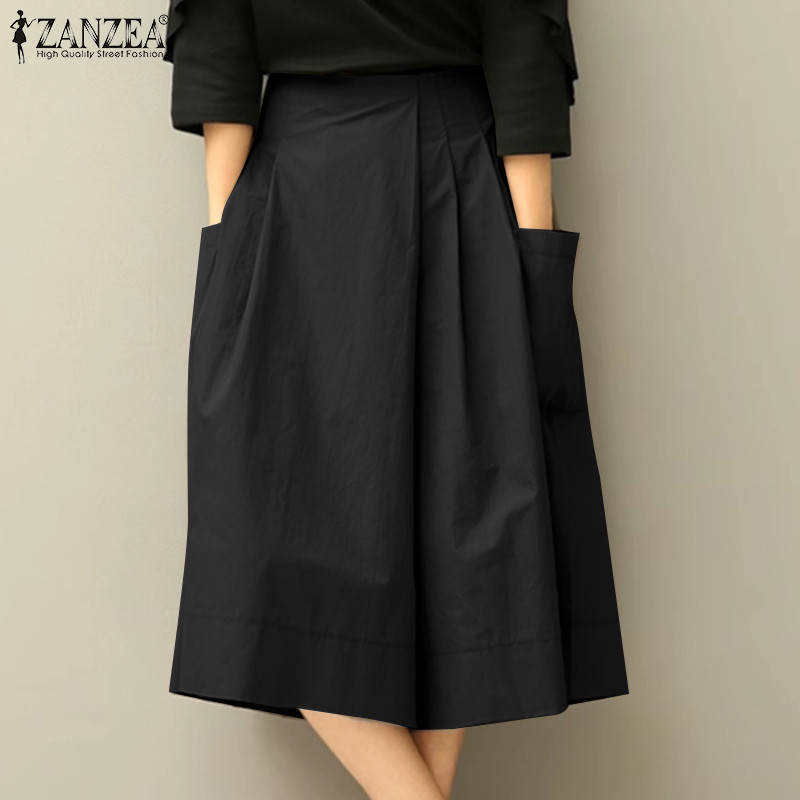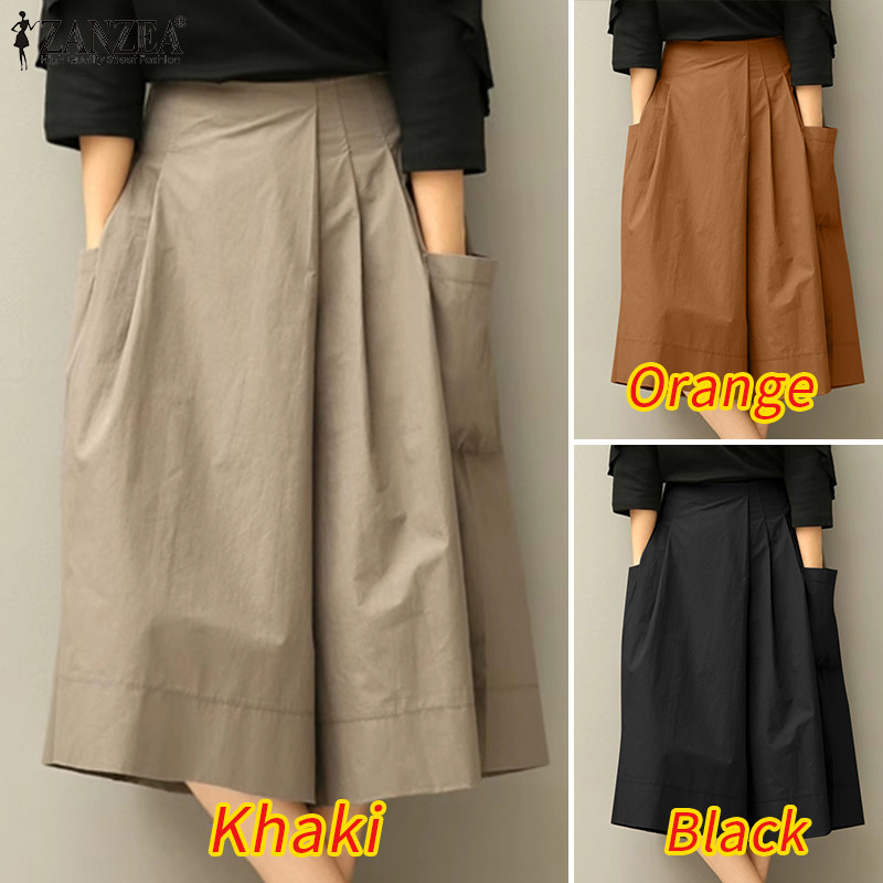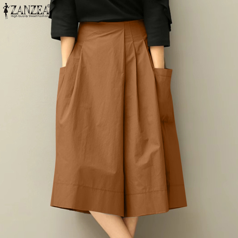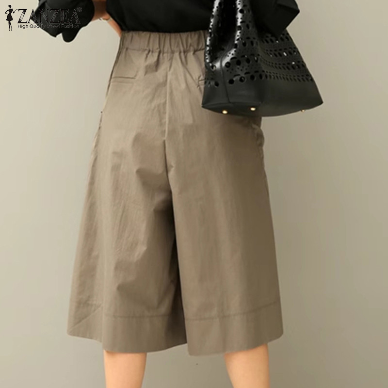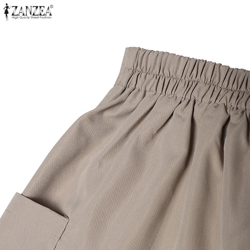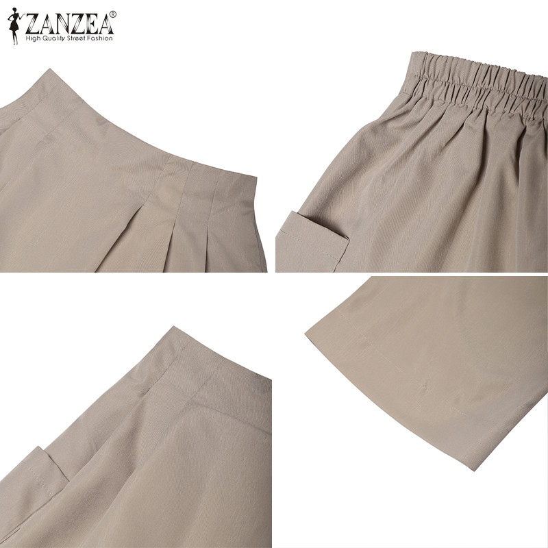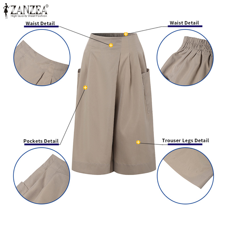 ZANZEA Celmia Women Korean Casual High Waist Pleats Side Pocket Cropped Pants