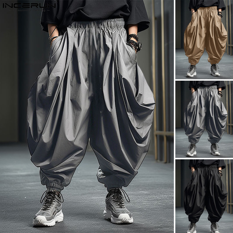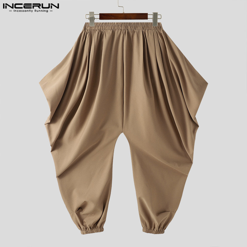INCERUN Men Korean Daily Solid Color Loose Casual Fashion Trousers