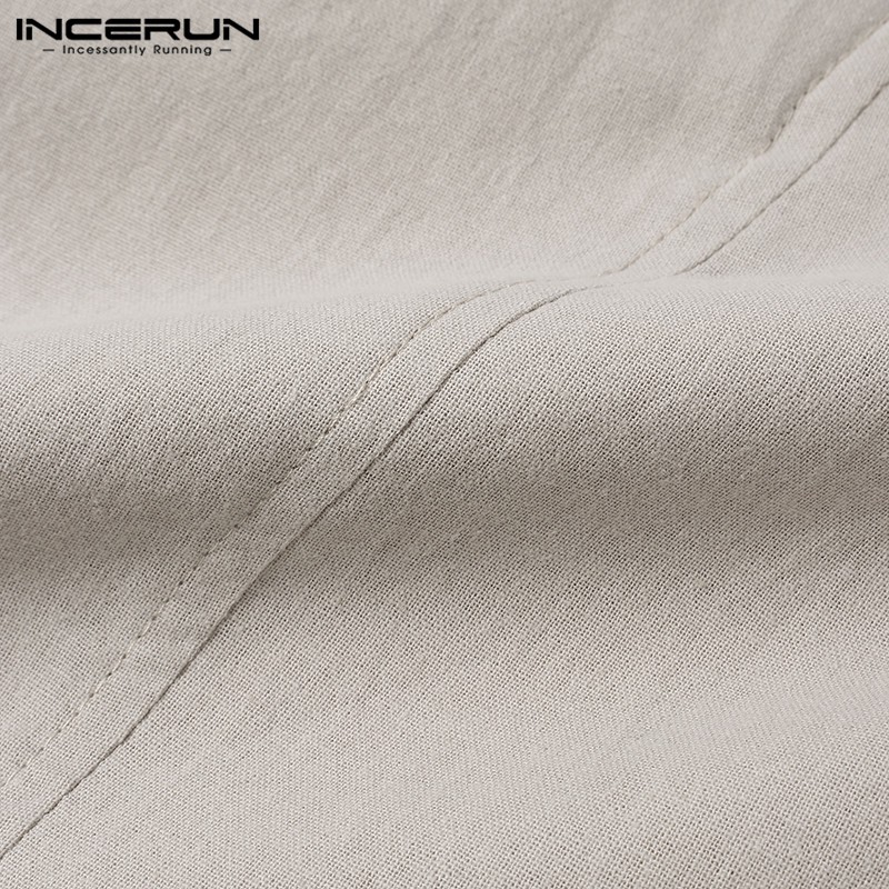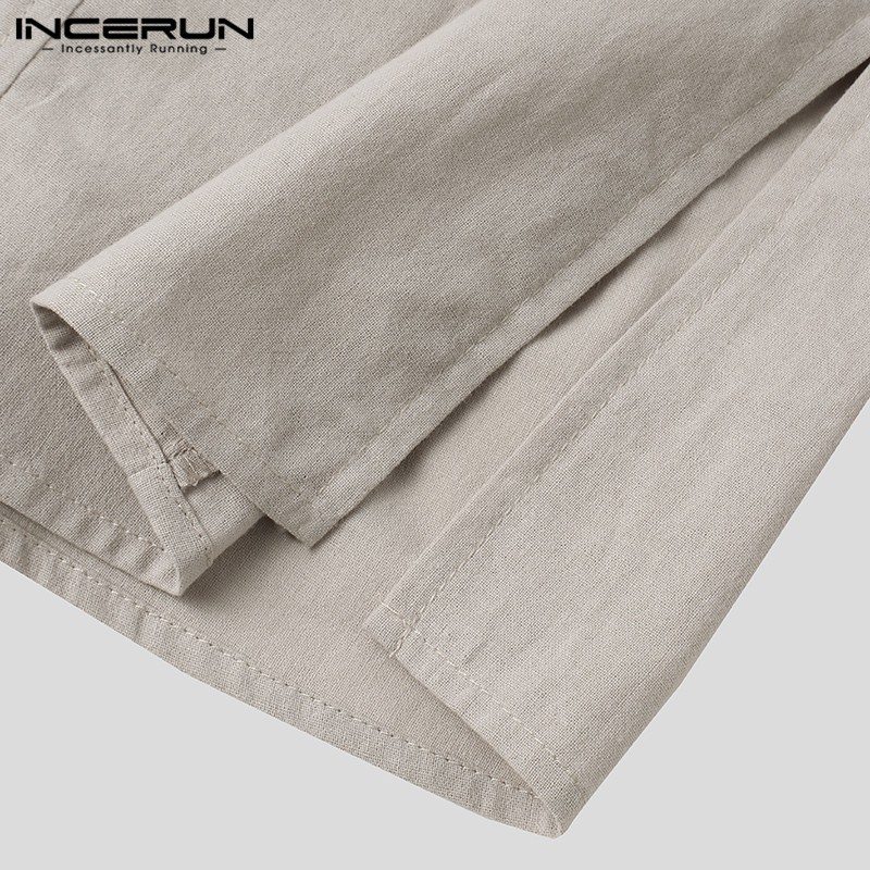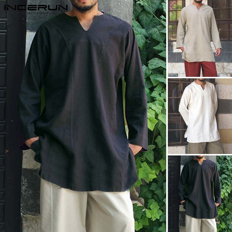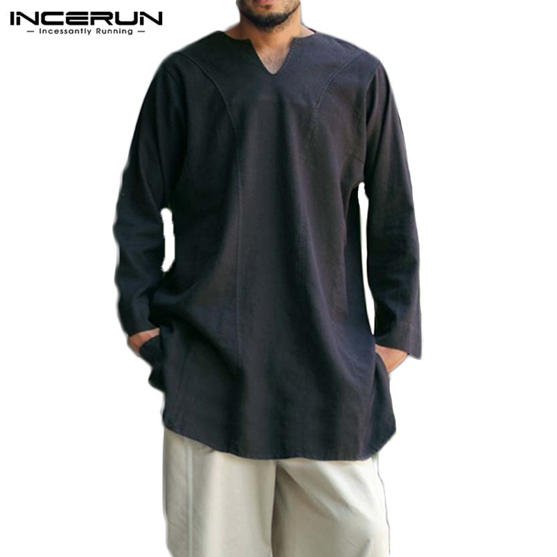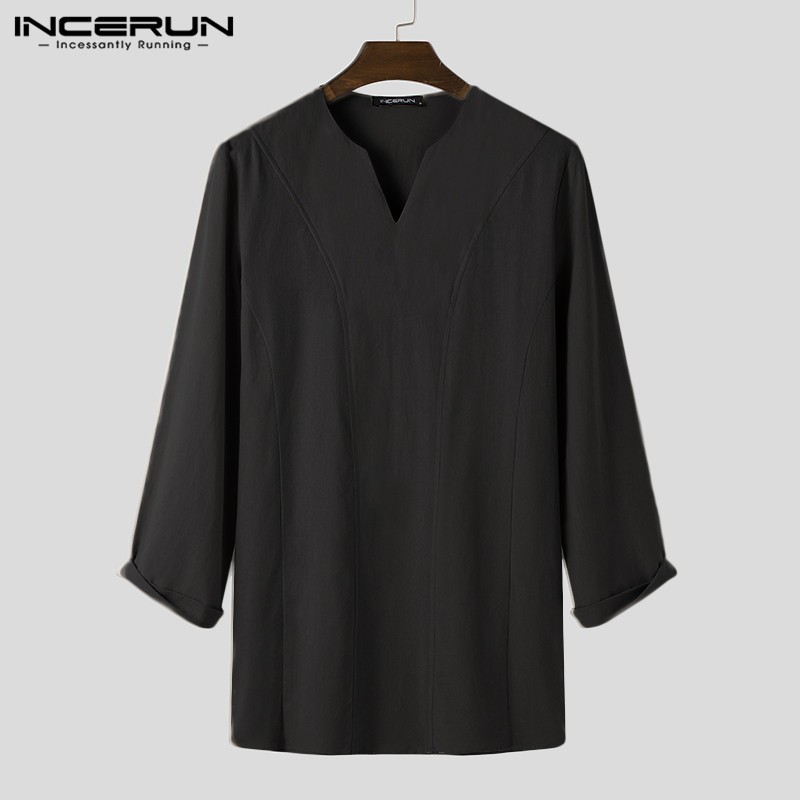 INCERUN Men Simple Casual Cotton Long Sleeve V-neck Loose T-shirt