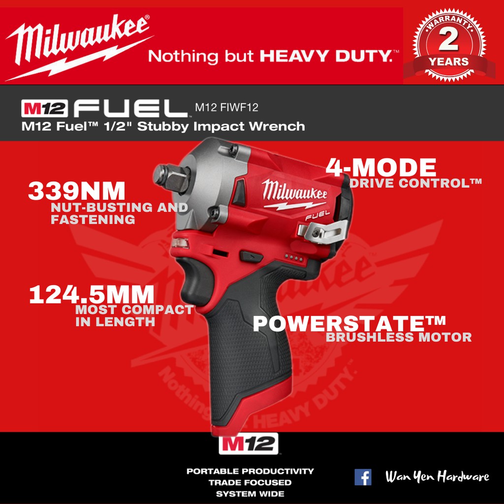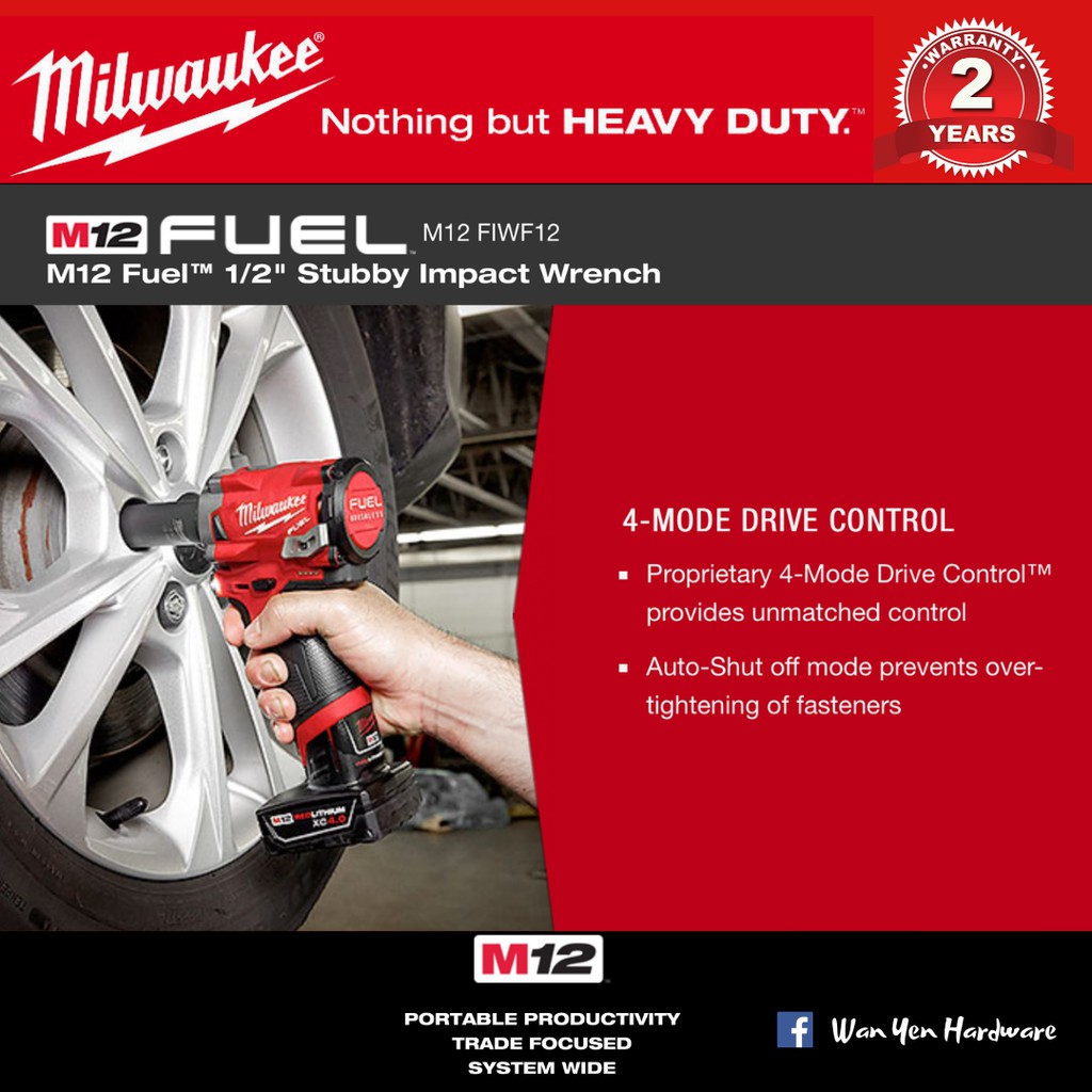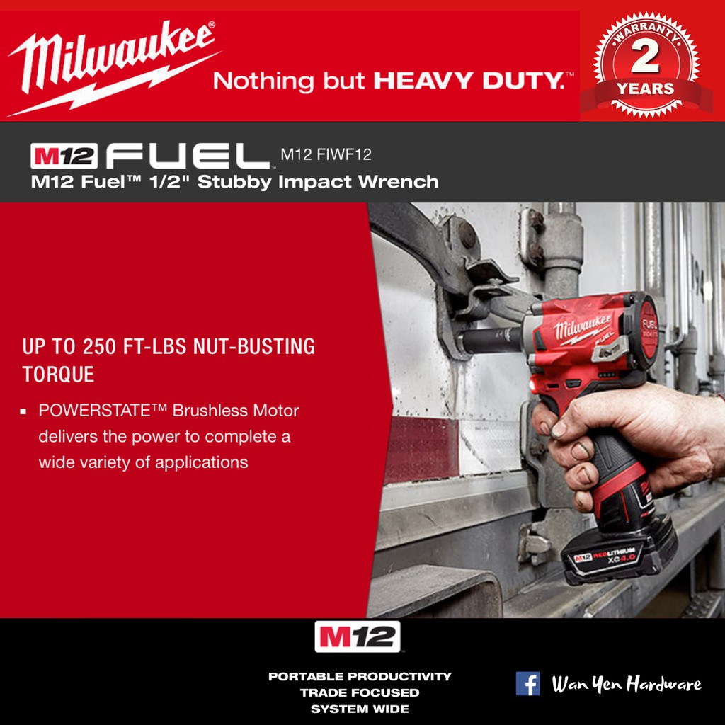 MILWAUKEE M12 Fuel 1/2" Stubby Impact Wrench - FIWF12 & FIW2F12