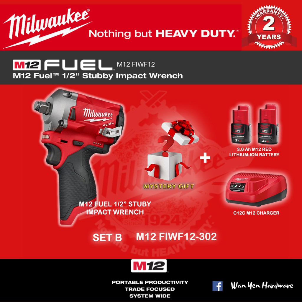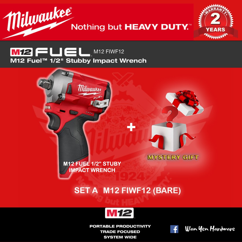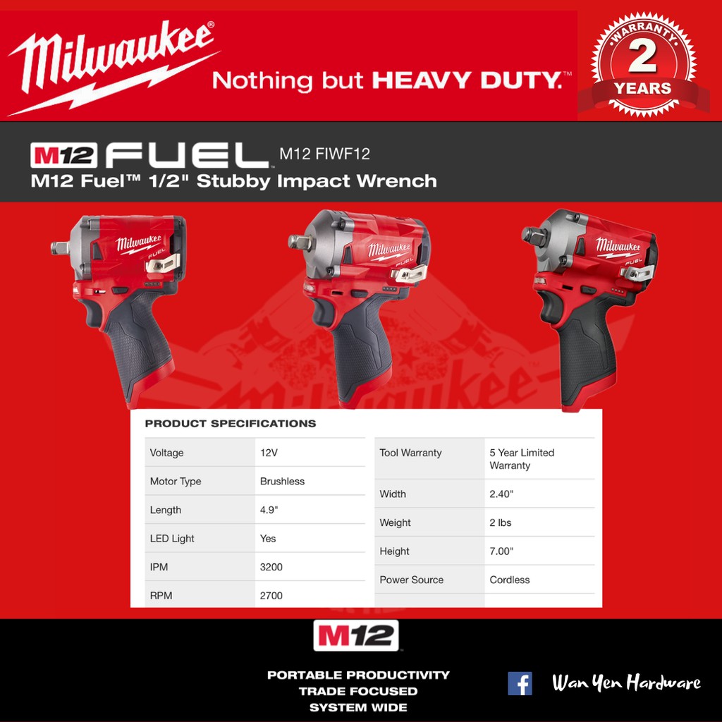 MILWAUKEE M12 Fuel 1/2" Stubby Impact Wrench - FIWF12 & FIW2F12