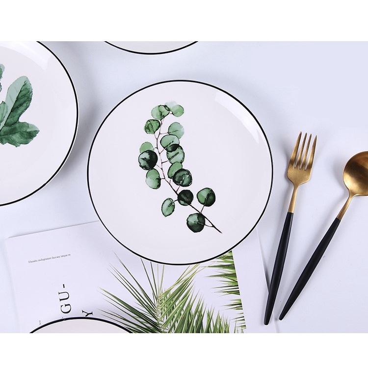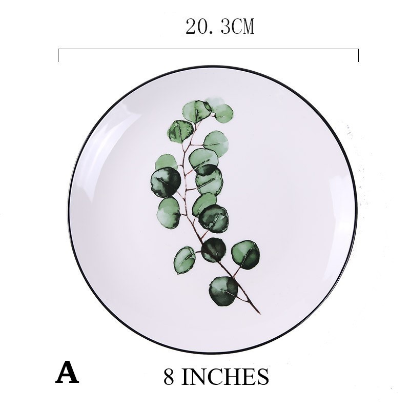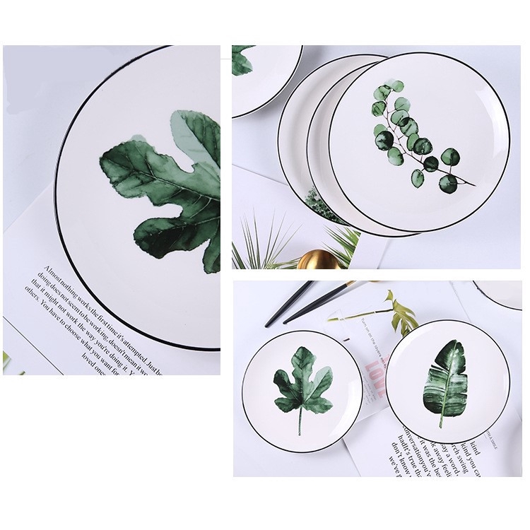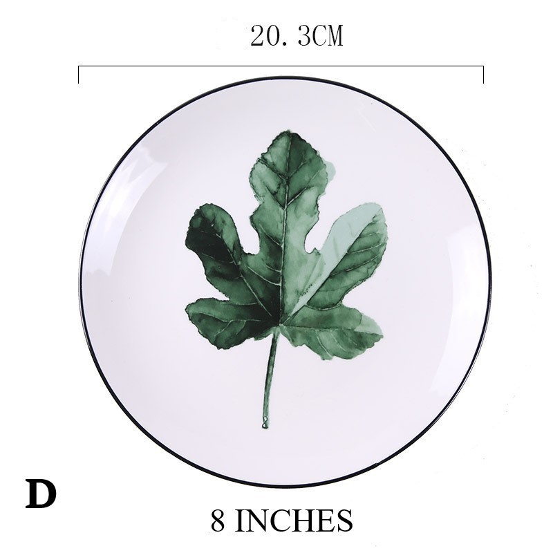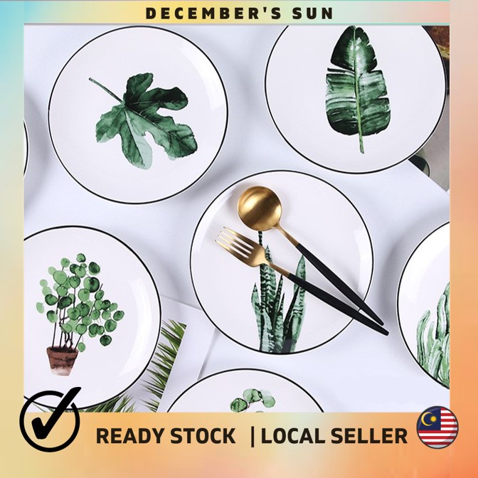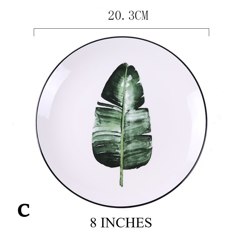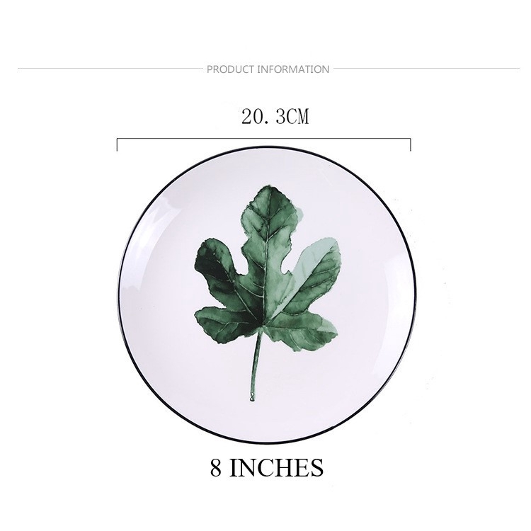 [READY STOCK] Green Plant Ceramic Plate Creative Plate Home Western Food Steak Plate