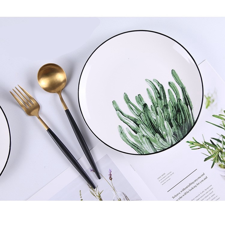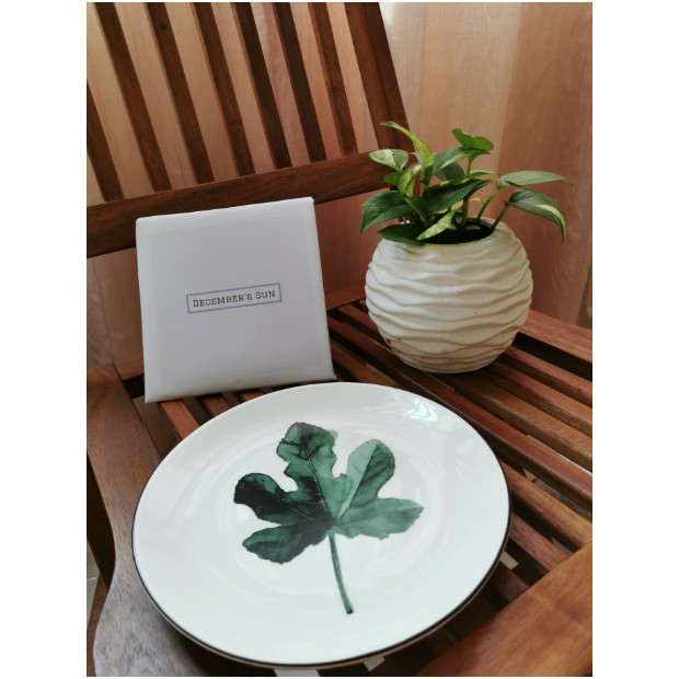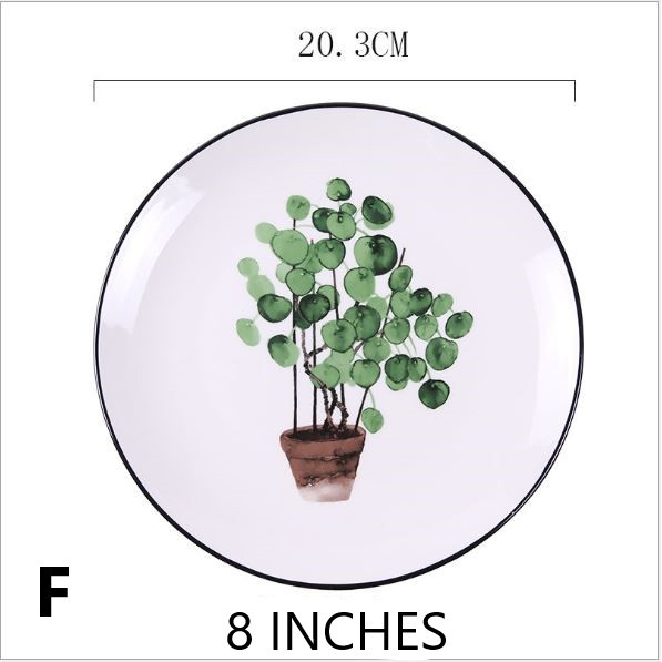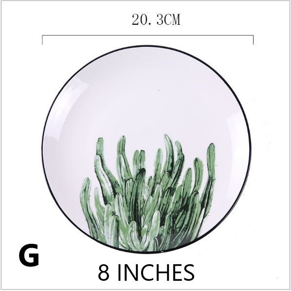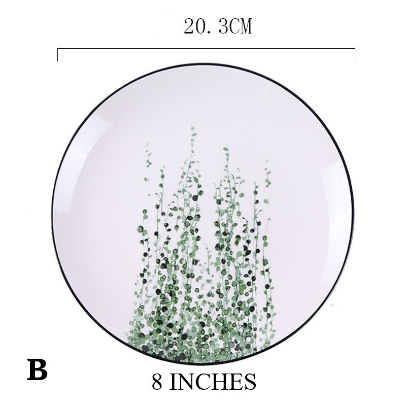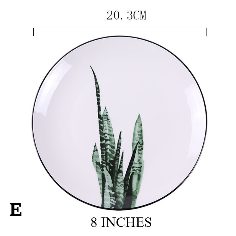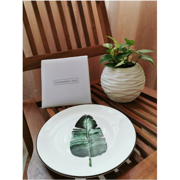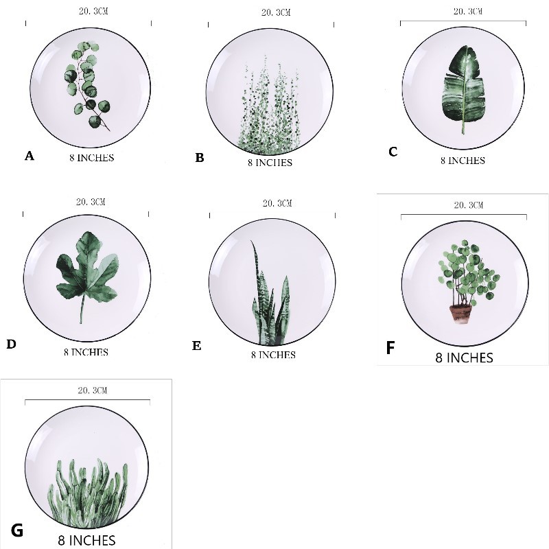 [READY STOCK] Green Plant Ceramic Plate Creative Plate Home Western Food Steak Plate