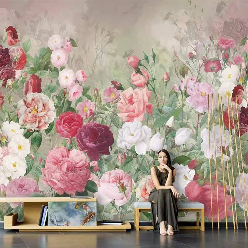 Custom 3D Romantic Pastoral Flower Wall Paper TV Background Bedroom Home Decor Wallpaper Living Room Sofa Floral Murals