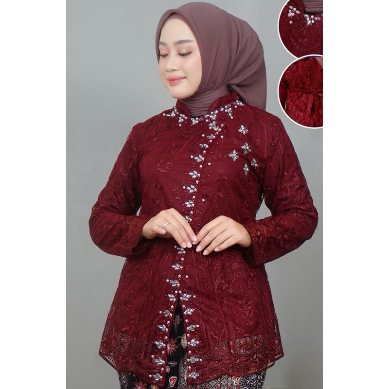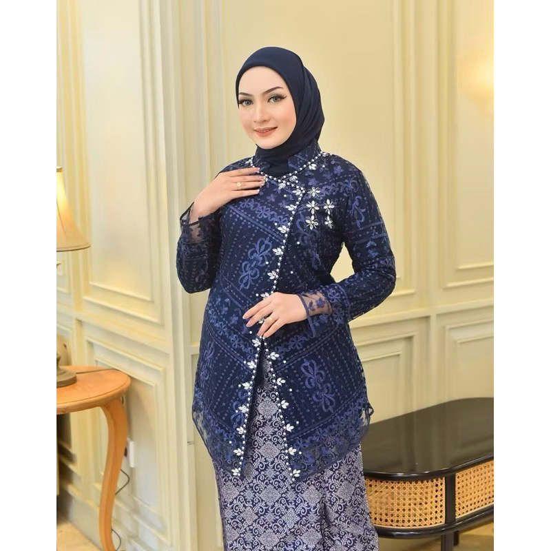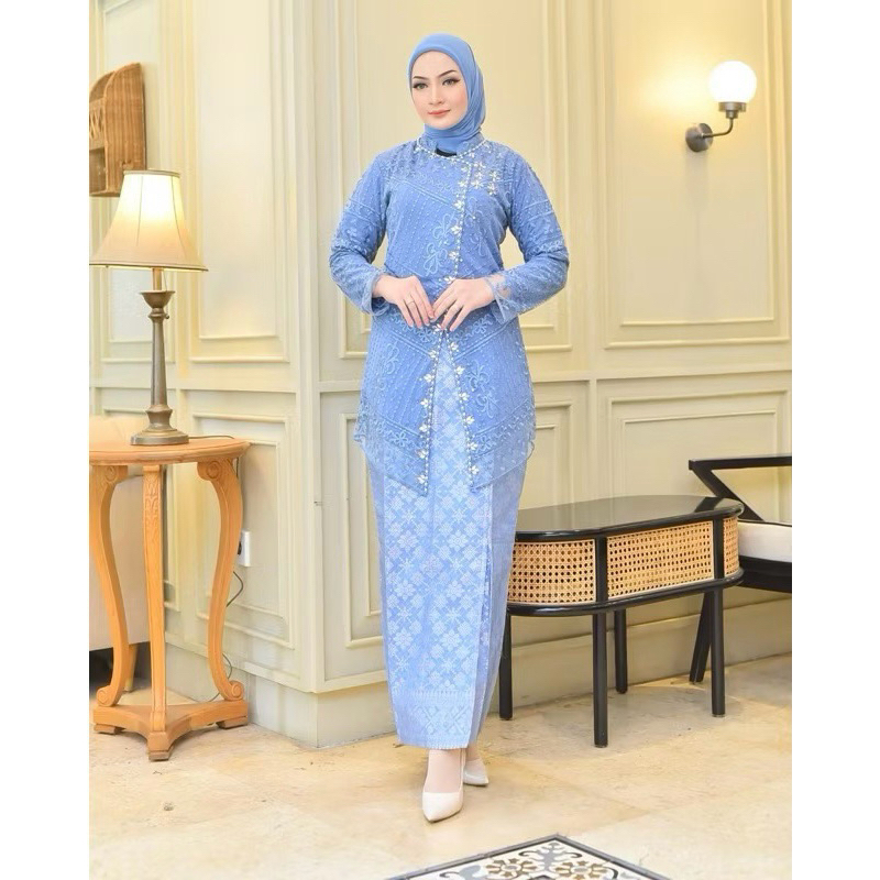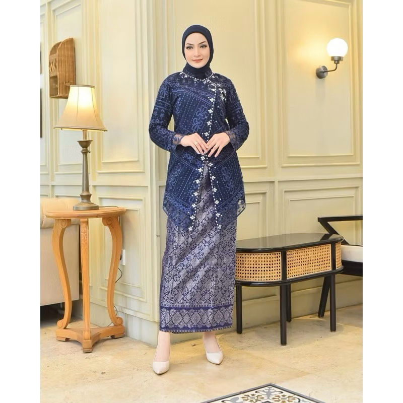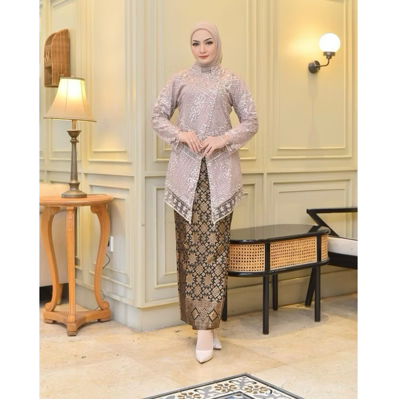 New Kebaya Sarita Tile Full Lining Janggan Sequins With Wrap Songket Skirt Women's Graduation Kebaya Family Party Kebaya Modern Kebaya