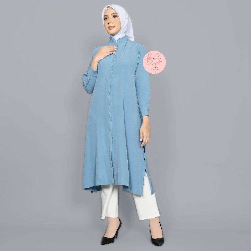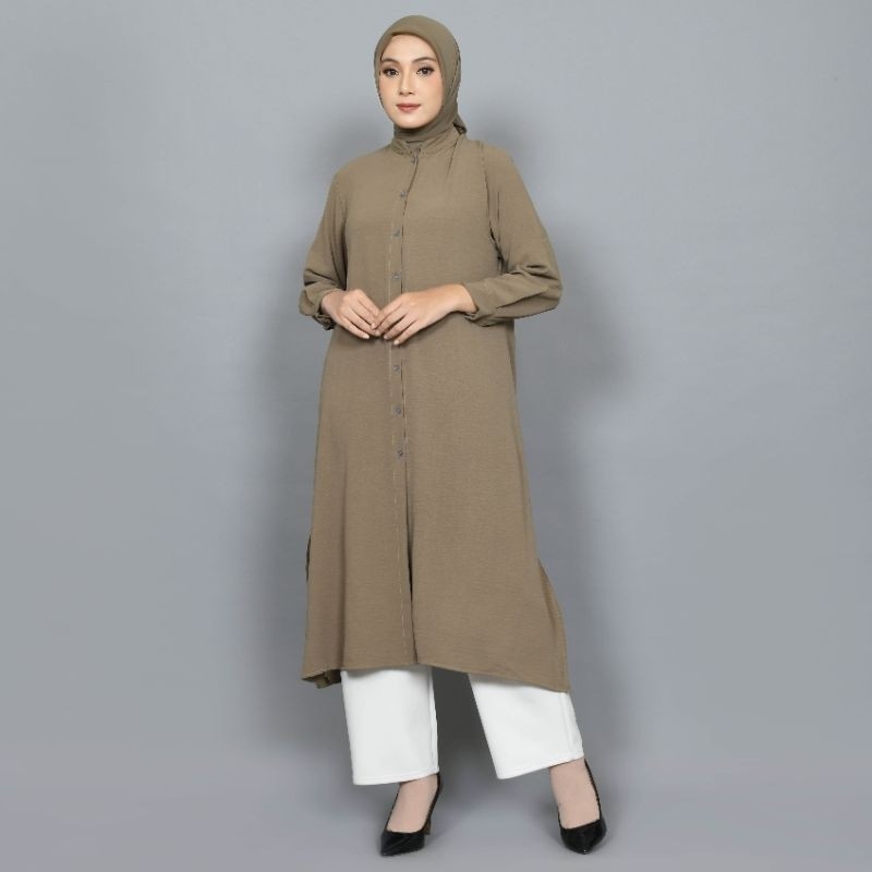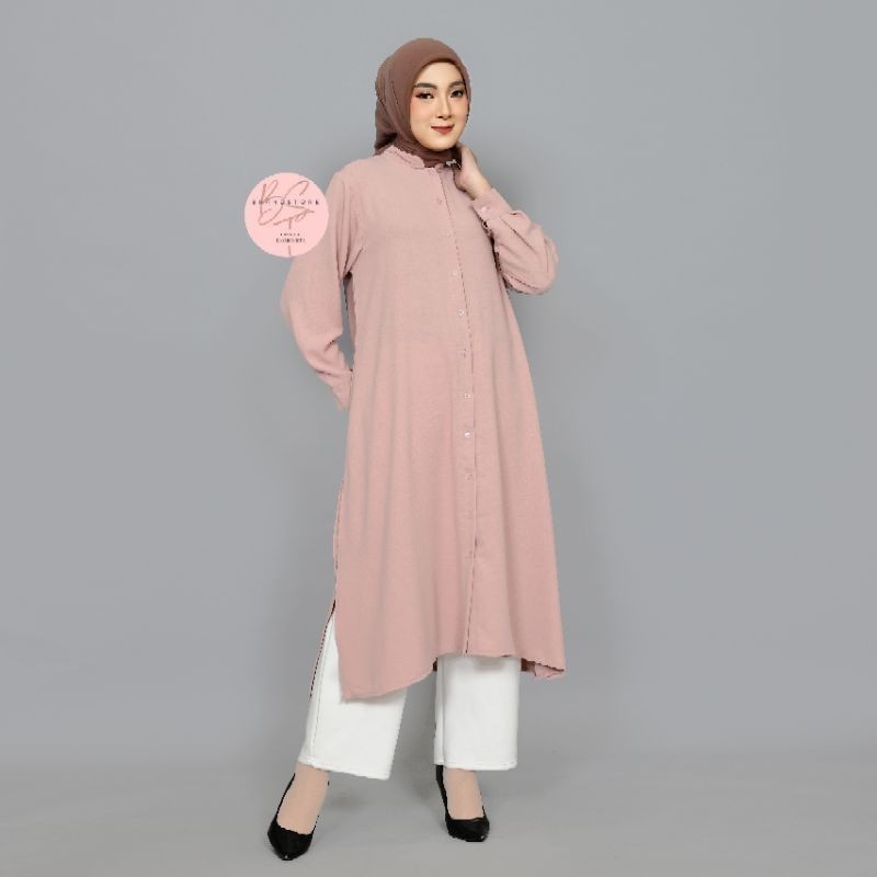 KEMEJA CHEAP KOREAN STYLE TUNIC PROMOTION BRANDSTORE/ - Shakila Botega Long Tunic & Crinkle Airflow Casual Plain Long Shirt Standard Jumbo