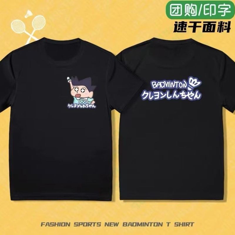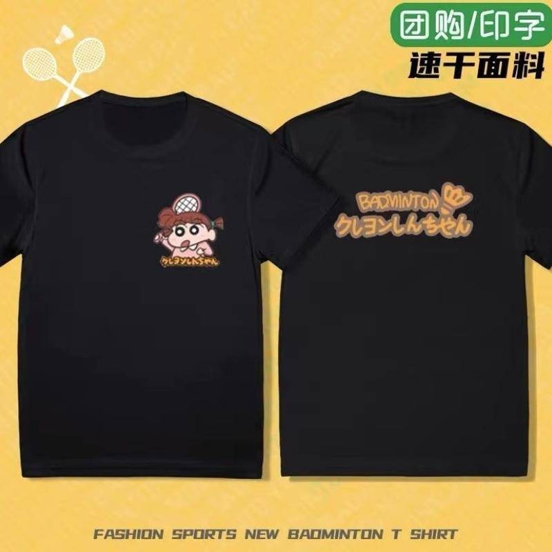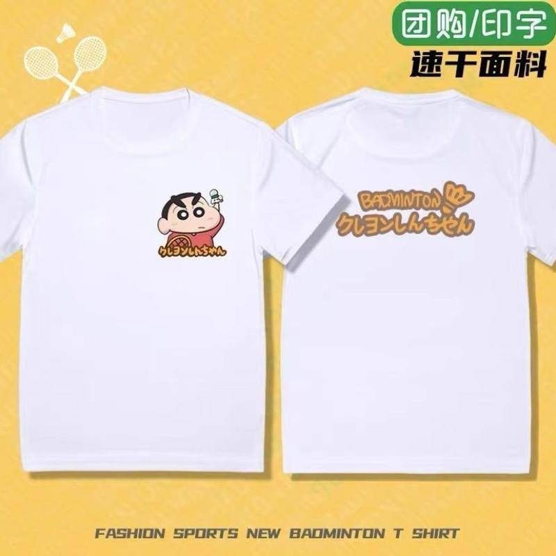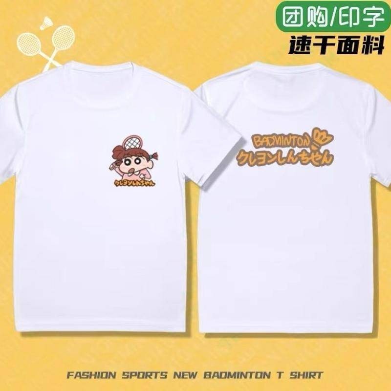 Summer Crayon Shin-chan Badminton New Collection | Quick-Dry & Moisture-Wicking Couple's Sports Tees | Short-Sleeve Breathable Casual Training Shirts | Featuring Nini, 阿呆 (Boke), Kazama, Masao | Ready Stock