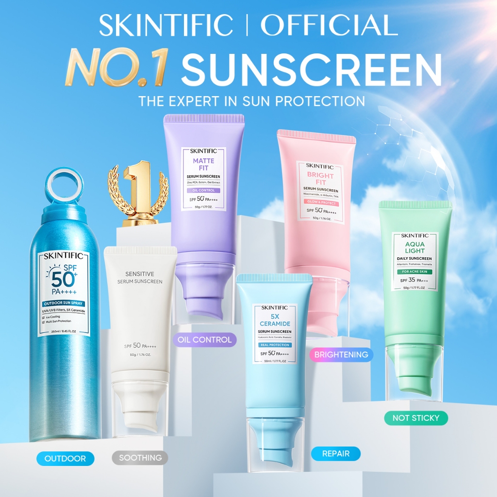 SKINTIFIC Sunscreen All-in-1 Series SPF50+PA++++UV Skincare | Matte Fit,Oil Control,Brightening,Repair,Aqua Light,Soothe