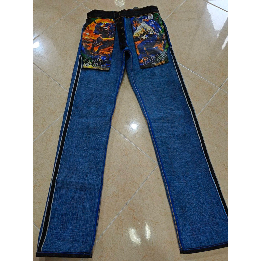 GUPEJEANS 21oz slub indigo x light blue Jeans (Square Shape Back))21oz Has A Slim Fit And Straight Fit.