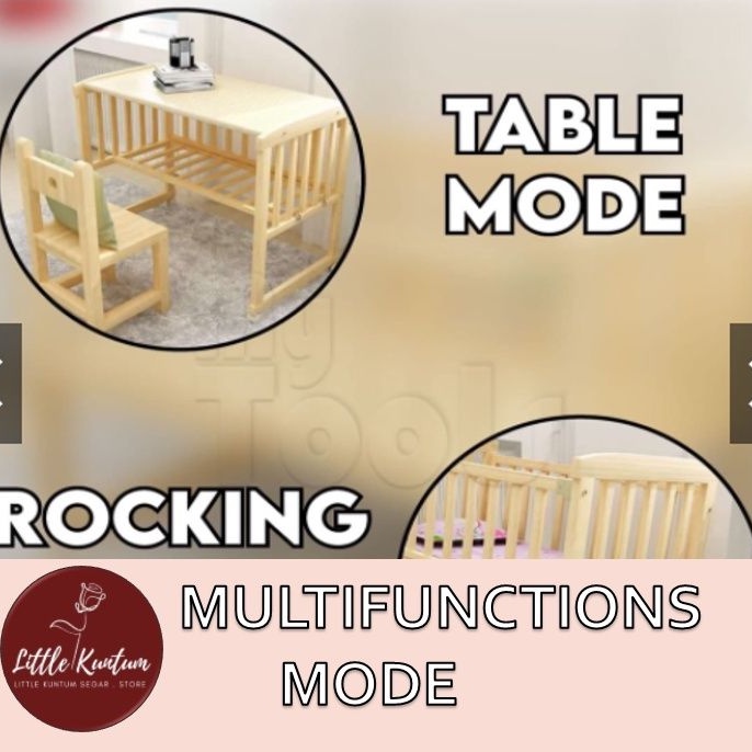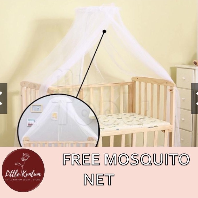 🔥🔥 [Ready stock] Rocking Solid Wooden Baby Cradle Cots Baby Bed Free: Mosquito Net and stands