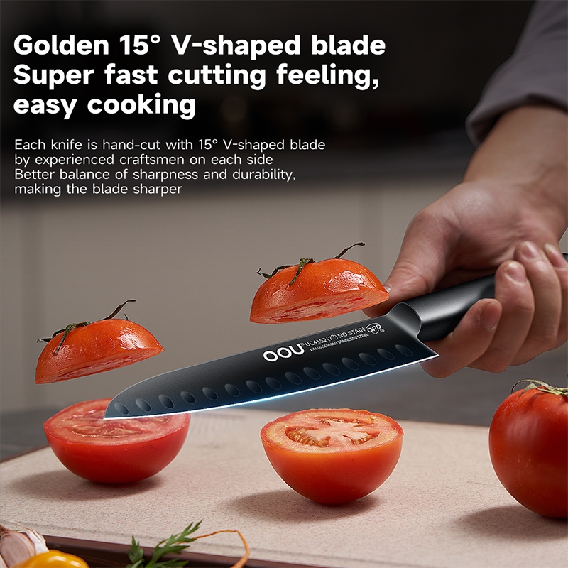 OOU Black Blade Master Series Knife Set With Scissors Sharpener Knife Holder (7 Pcs)