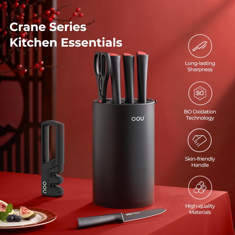 OOU Crane Series Kitchen Knife Set With Scissors & Sharpener Holder (7 Pcs)
