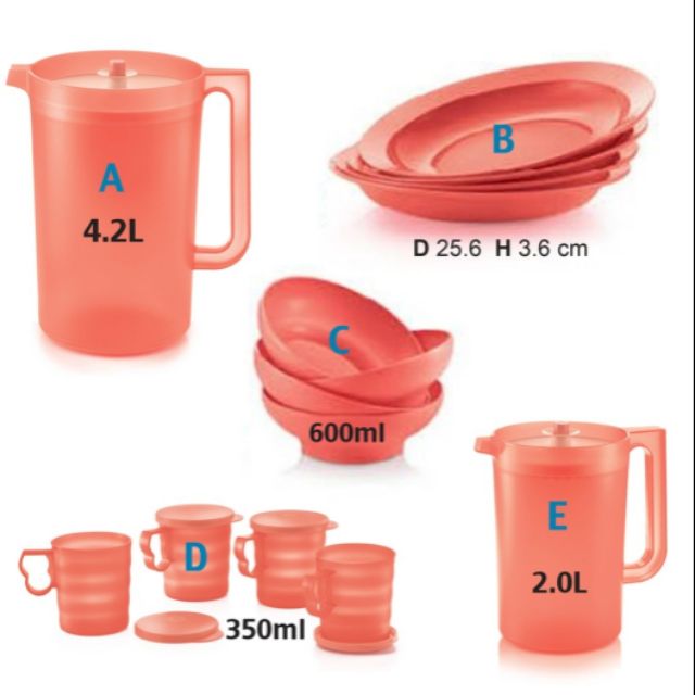 TUPPERWARE Coral Blooms Giant Pitcher 4.2L/2.0L/Mugs With Seal 350ml/ open house plate