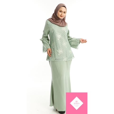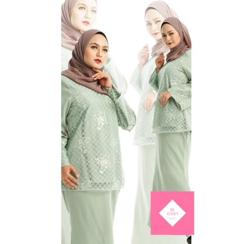 Baju Kurung Modern Plus Size Mint Green 1599526