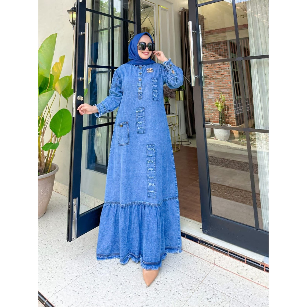 Women's Gamis FOR EID- Deana Maxy Jeans Gamis / Light Snow Dress / Muslim Clothes / Latest Model Women's Clothing / Contemporary Jeans Dress