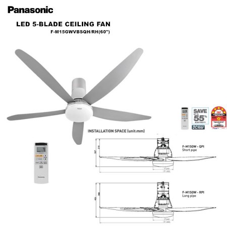 PANASONIC CEILING FAN F-M15GW 5 BLADE 60” KIPAS SILING(吊扇)Kipas Siling