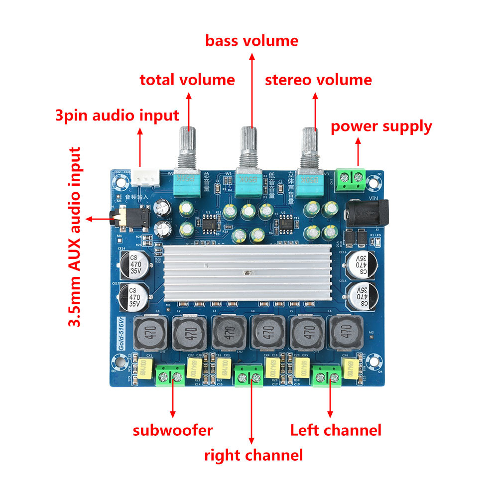 DIYMORE DC 8-24V Stereo Bi-Channel Amplifier Board 50W*2+100W TPA3116 Class D 2.1 Channel Audio Amplifier Module