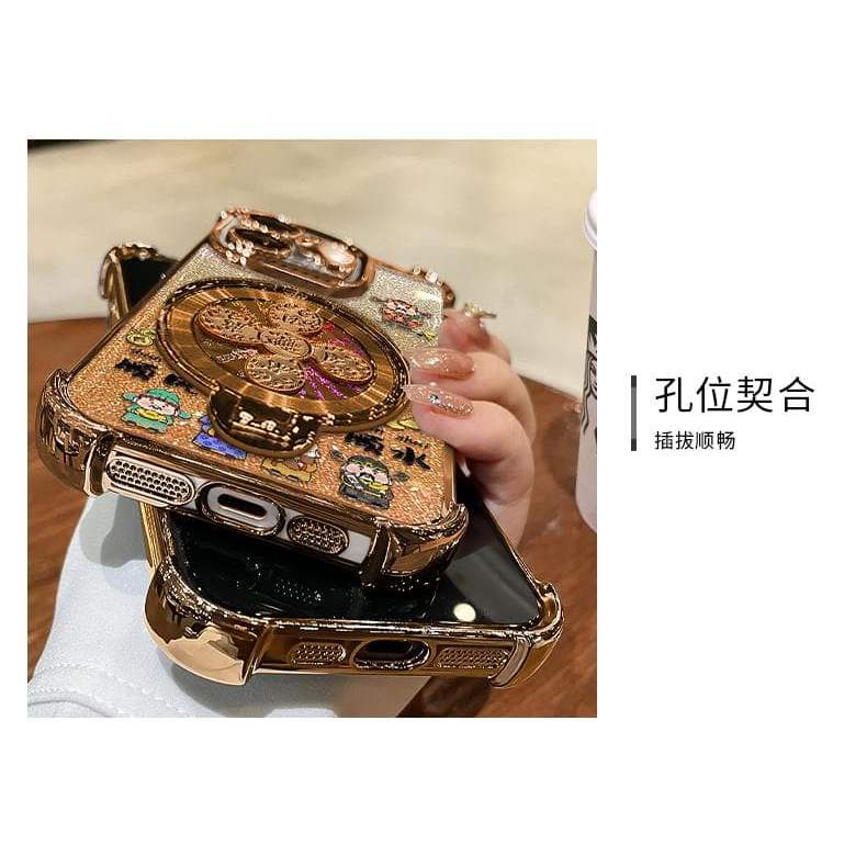 Money Rolling Casing For iPhone 11 12 13 Pro Max Case For iPhone 6 6s 7 8 Plus XR X XS Max 12 13 Mini Phone Case Shock Rotating Bracket National Trendy Chinese Style Girl Women
