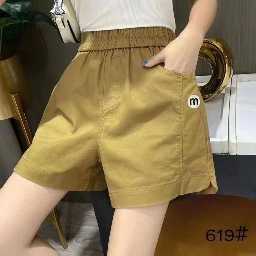 shorts 短裤 韩版时尚高腰短裤女2025百搭松紧腰女装显瘦a字阔腿短裤 [In Stock] Korean Style Women's High-Waist Elastic Waistband Shorts - Slimming A-line Cut
