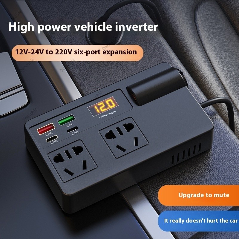200W Multi-Functional Car Power Adapter DC 12V/24V to AC 220V Inverter Multi-Port USB/PD/Type C Charger with Intelligent Digital Display Fast Charging Sockets