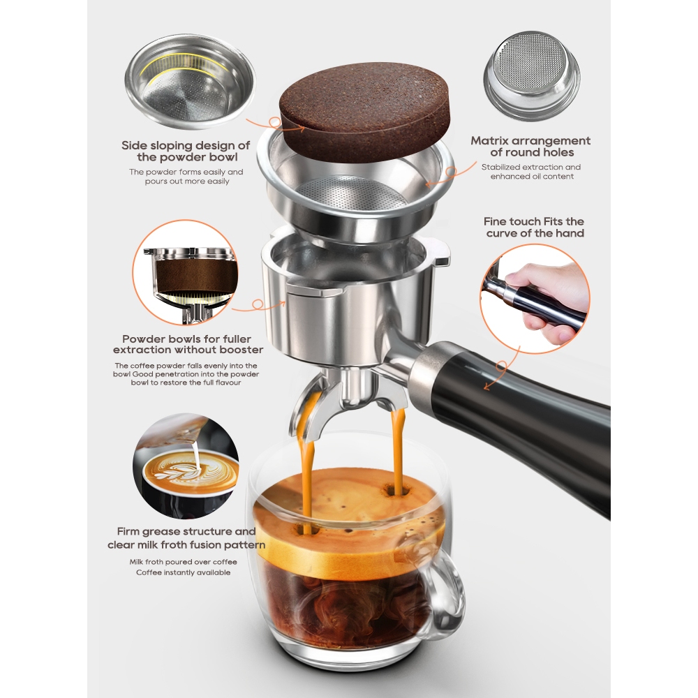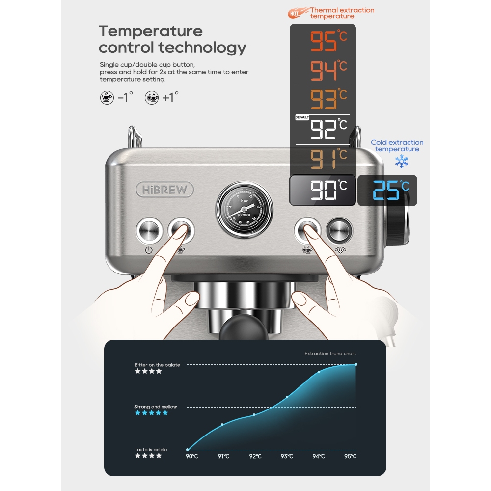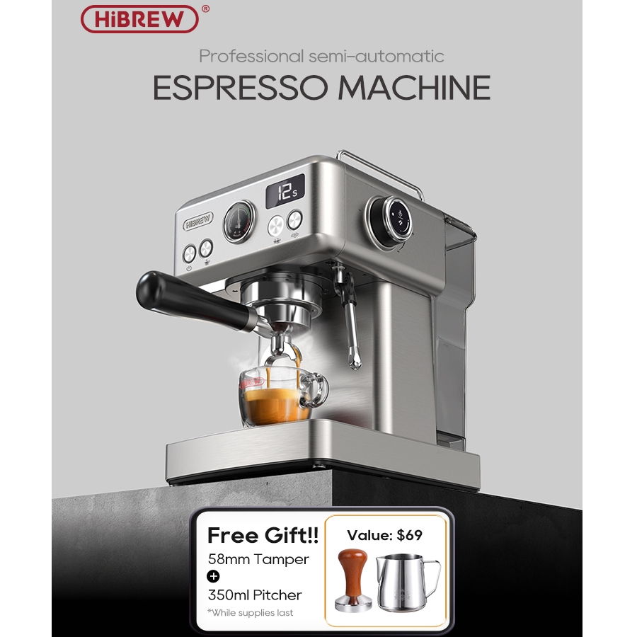 HiBREW 20Bar Semi Automatic Espresso Machine Temperature Adjustable 58mm Portable Filter Coffee Machine Cold/Hot H10A