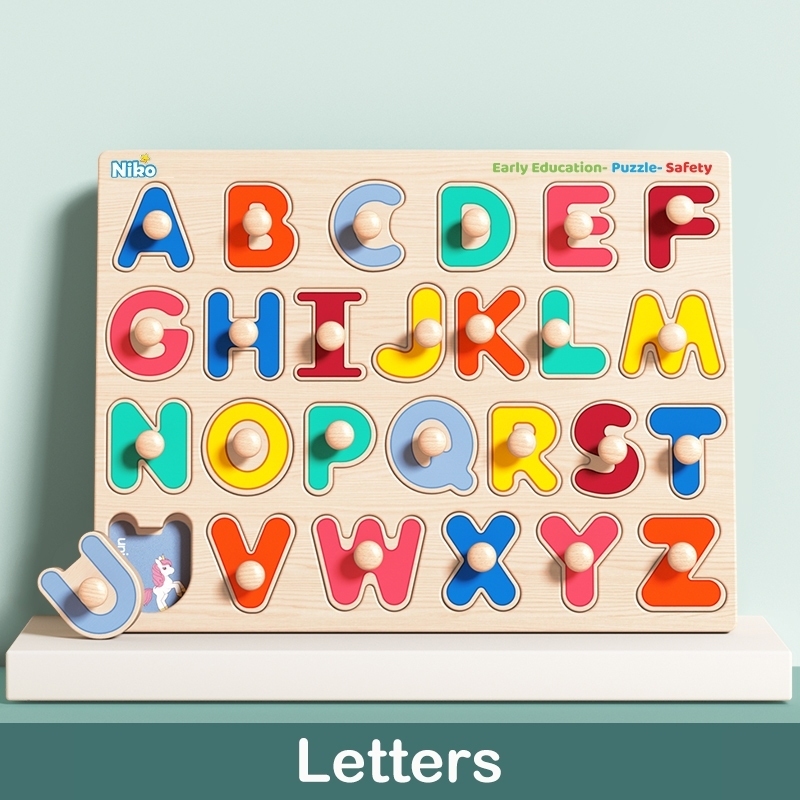 NIKO ABC Letter Digital Puzzle Wooden Toys For Kids Alphabet Number Shape Sorter Jigsaw Board Toys Early Educational Toy
