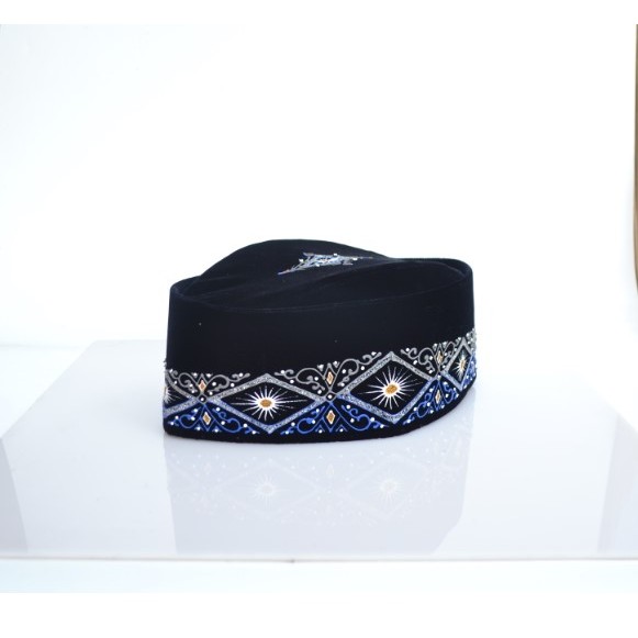 Songkok Susun Kopiah Stacked Soga Motif Painted Blue Shafir