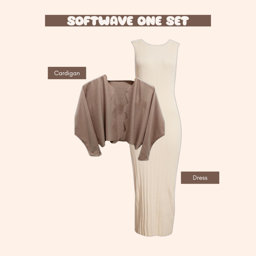 Softwave Outfit | One Set Korean Style Inner Dress + Cardigan + Hijab Bella Square | Set LB107