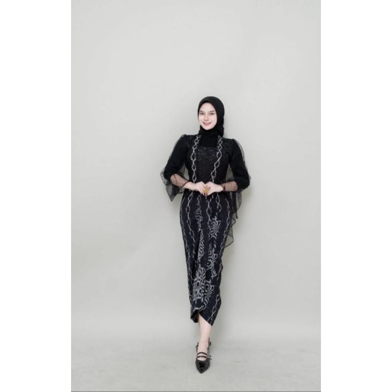 KEMEJA Pesona Black Puspa Couple Set Wedding dress Men's shirt full woven traditional kebaya dress set, baju couple set pasangan baju matching couple